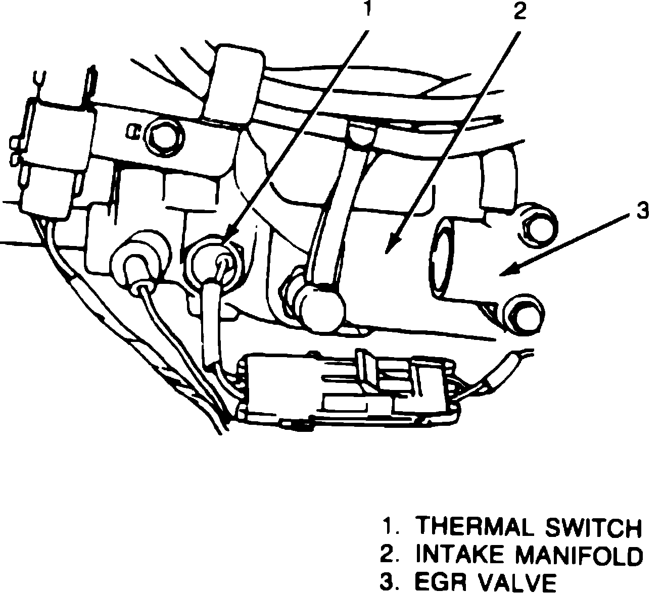 Engine coolant temperature is sensed by an intake manifold mounted thermal switch, Fig. 3.