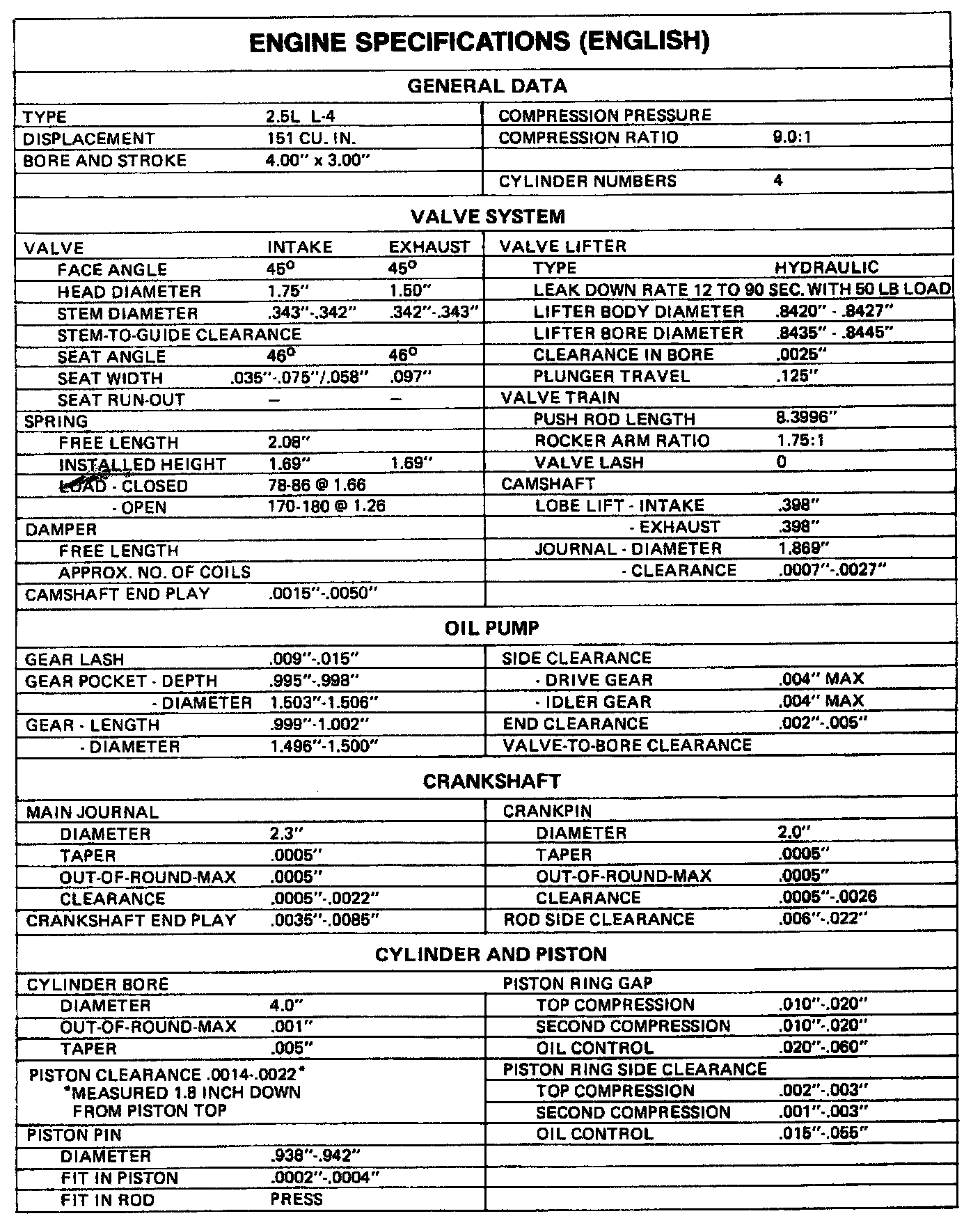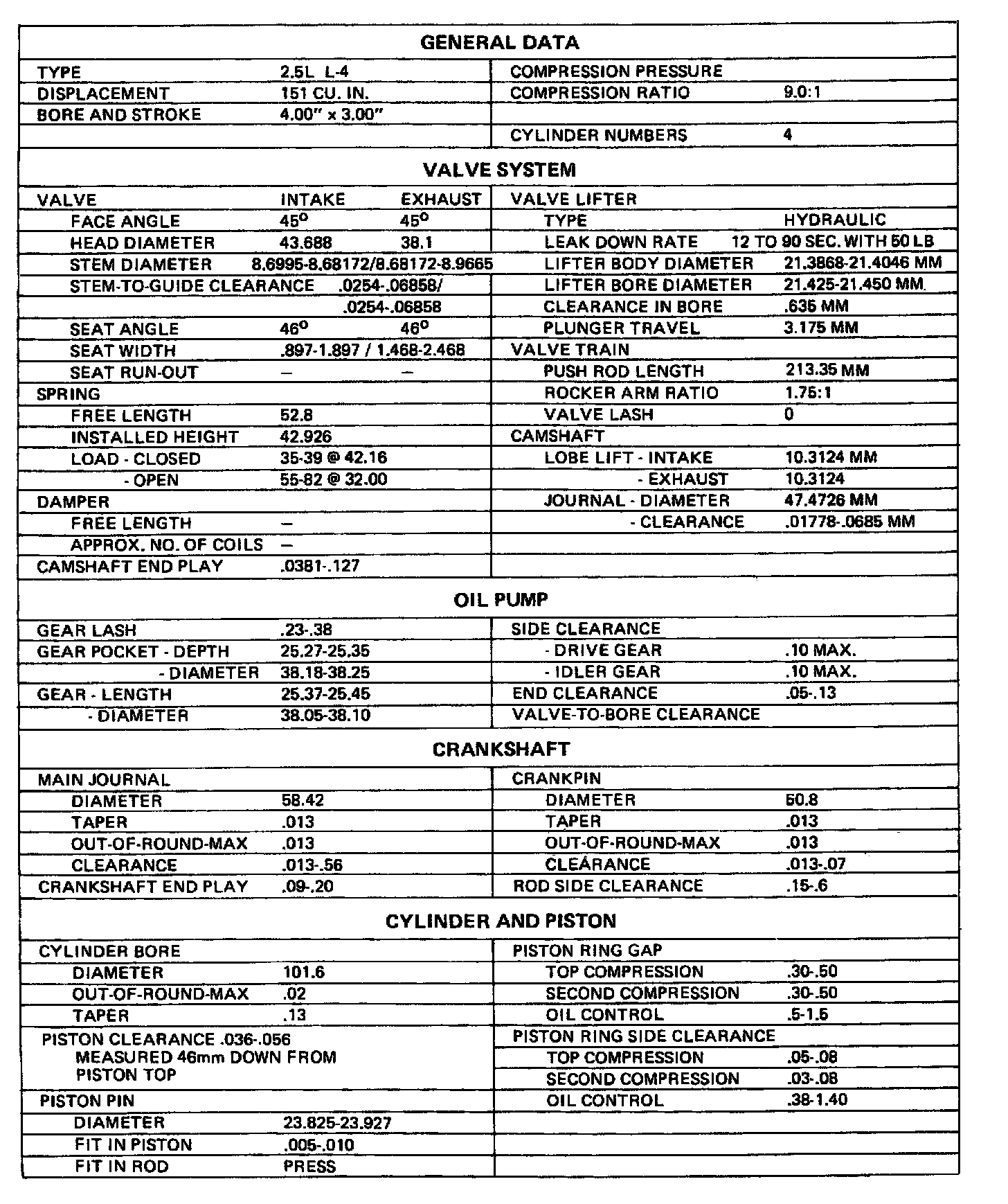 Camaro L4-151 2.5L
