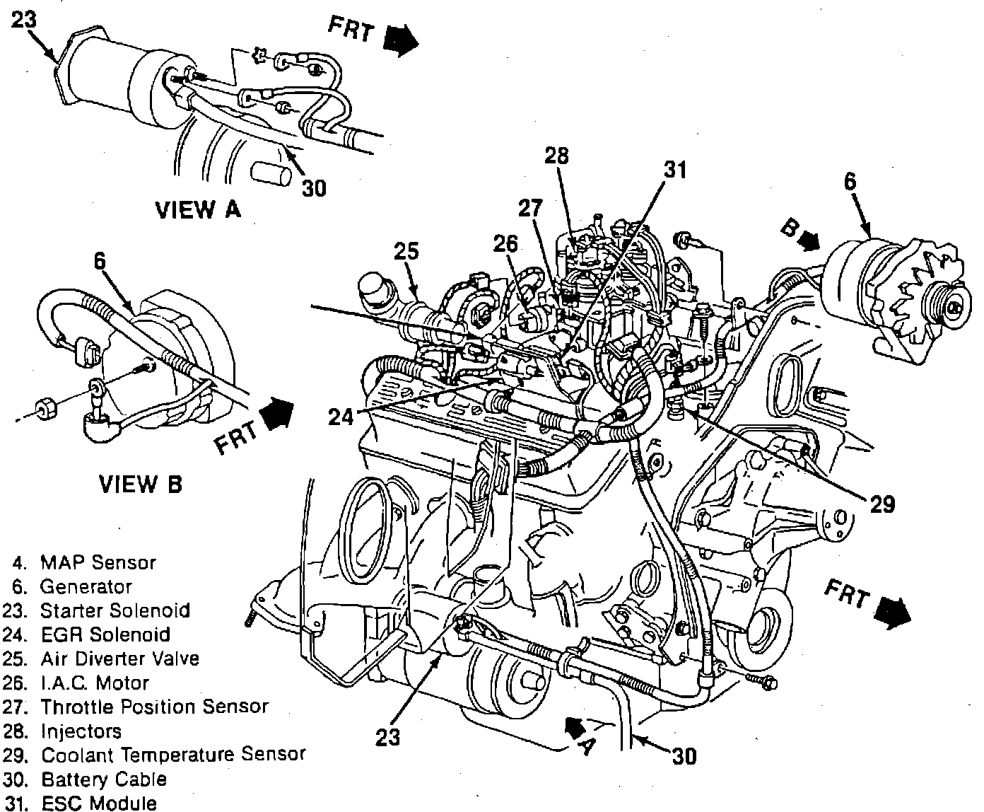In RH Side Of Engine Wiring Harness On Bracket, Near Top RH Side Of Engine