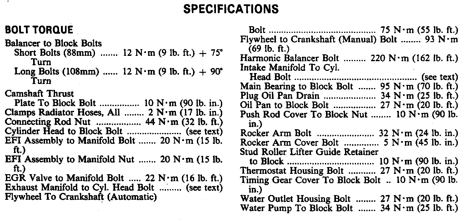 Torque Specifications: