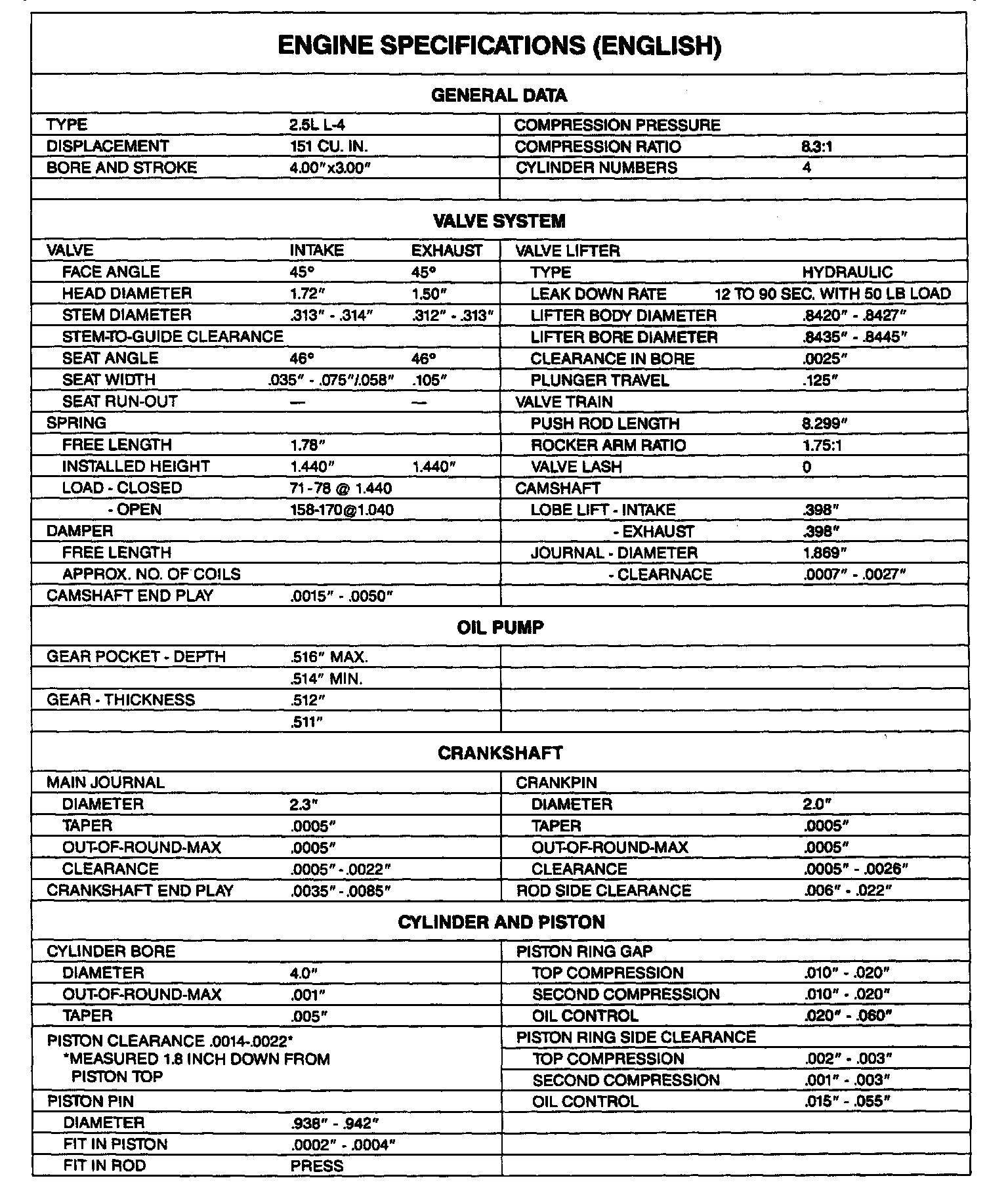 Celebrity L4-151 2.5L