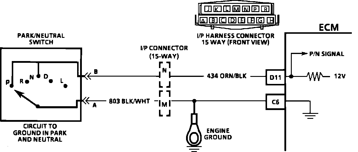 ^ If CKT 434 always indicates drive (open), a drop in the idle may exist when the gear selector is moved into drive range.