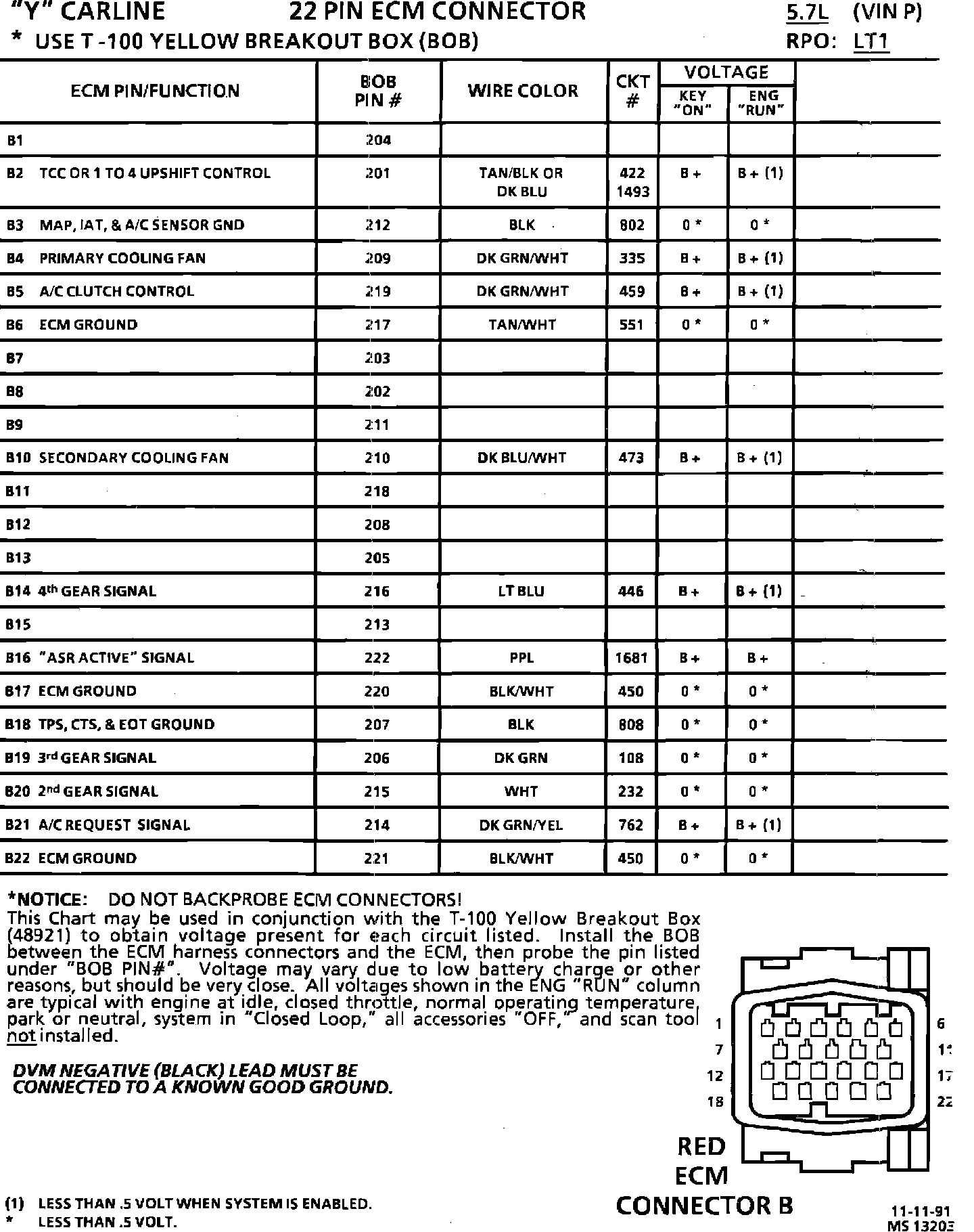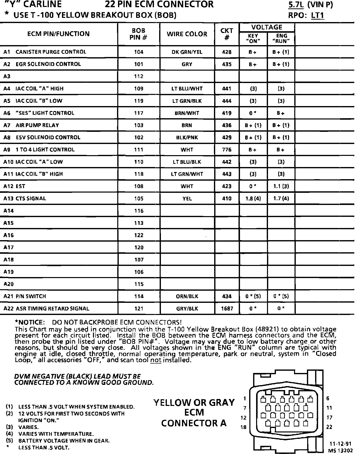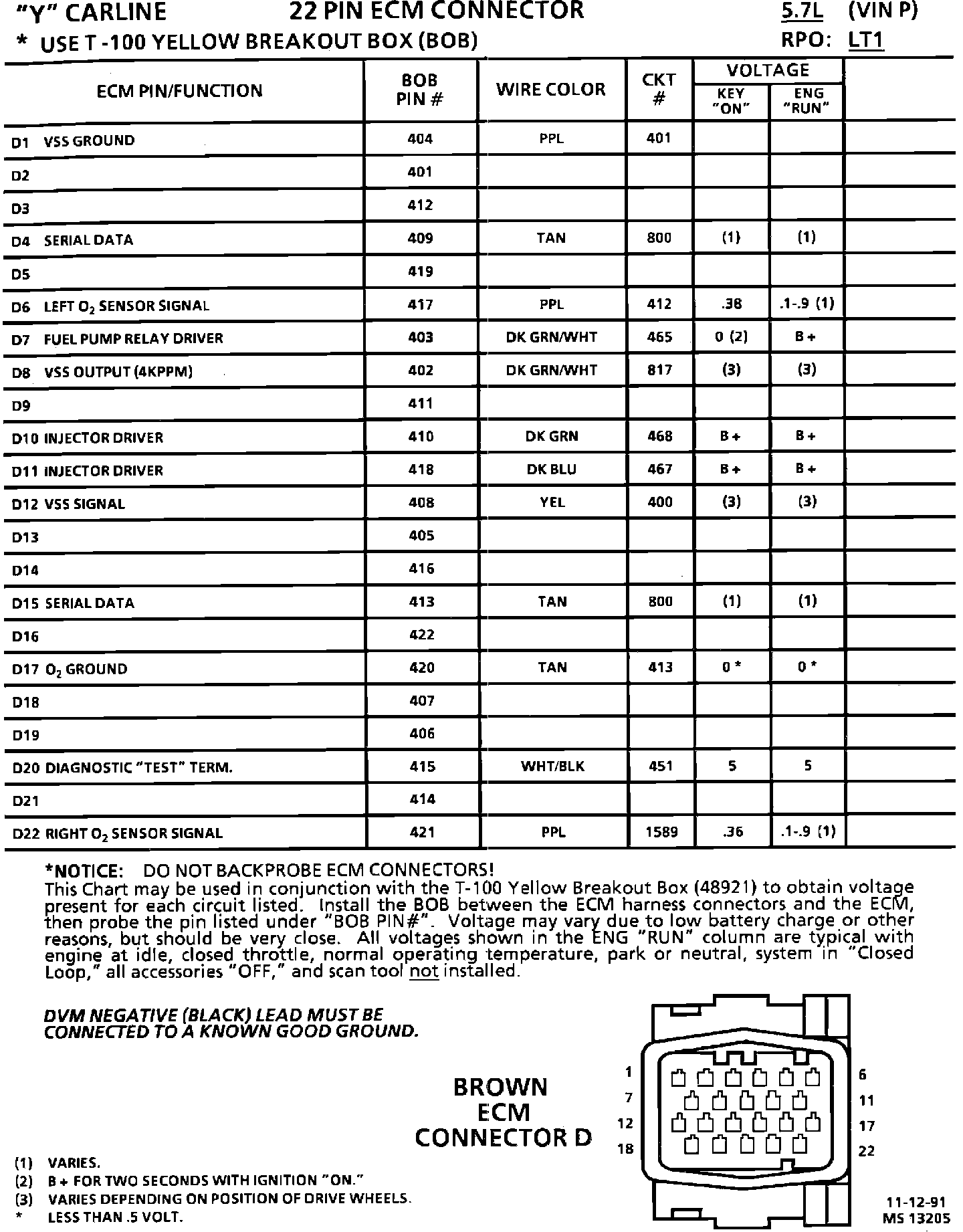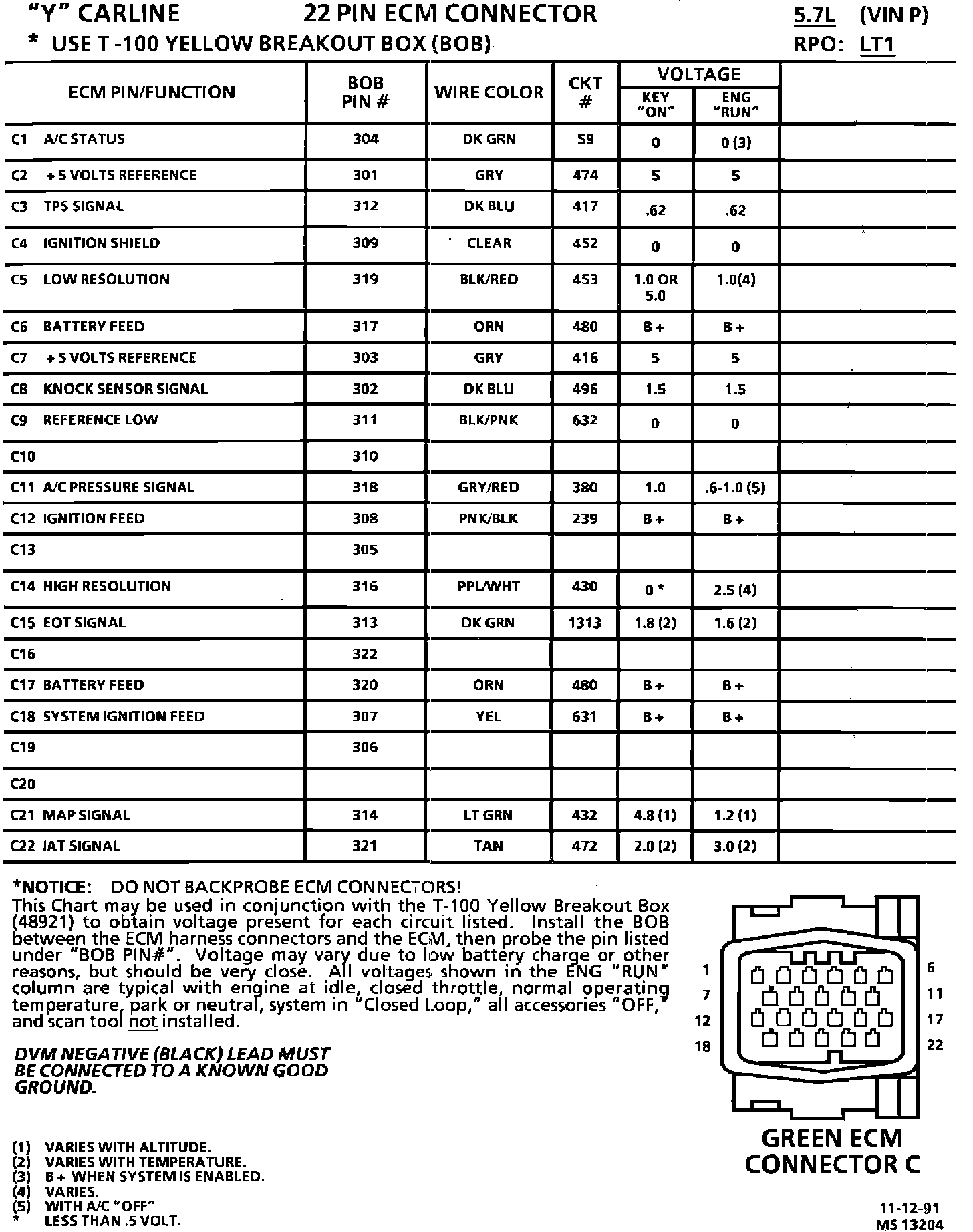 ECM Pin Voltage Chart: