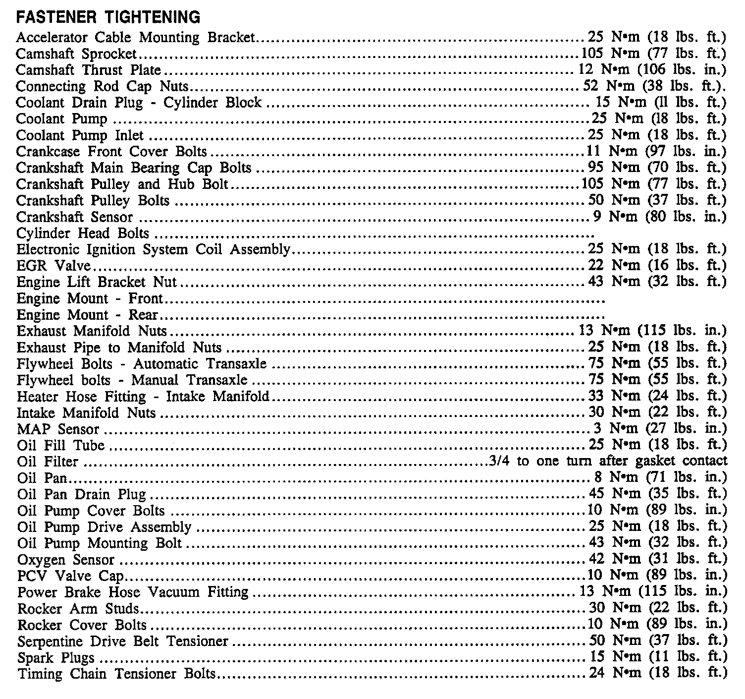 Torque Specifications:
