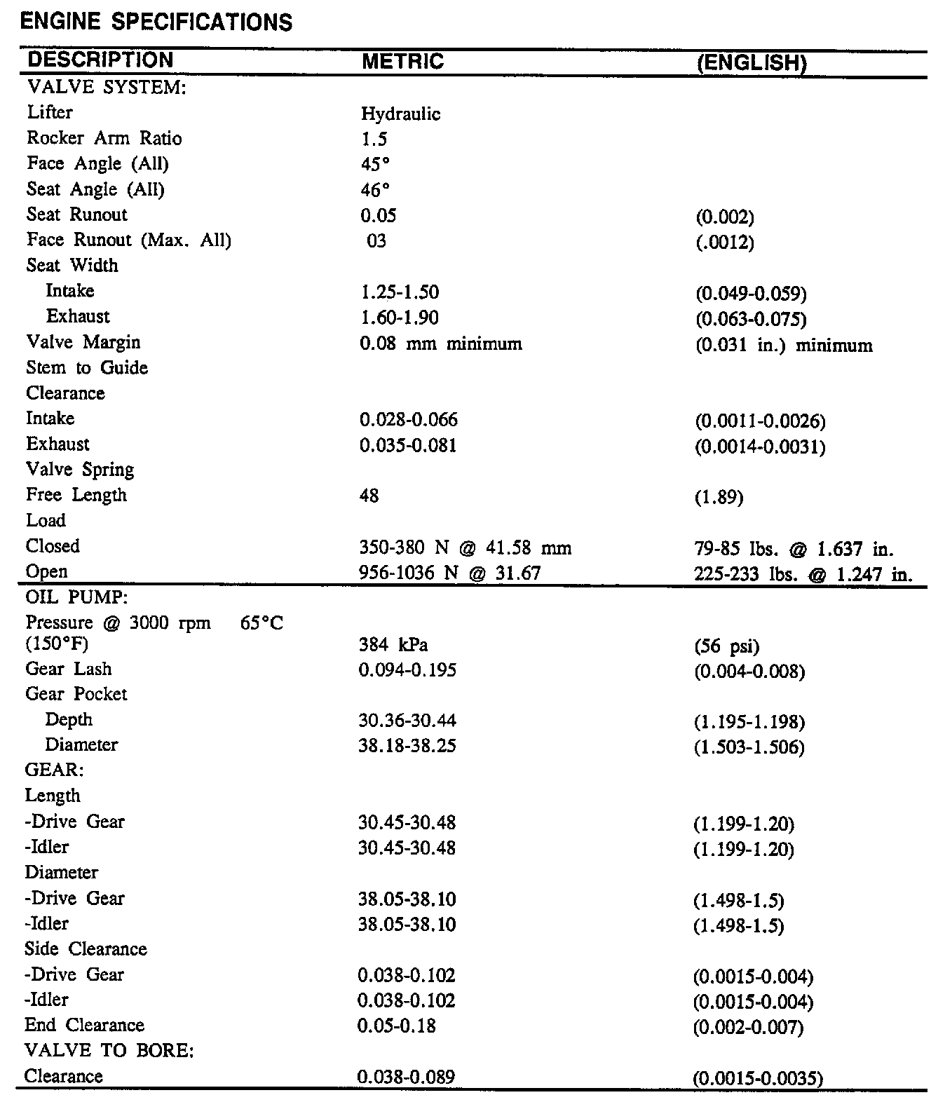 Continued Engine Specifications: