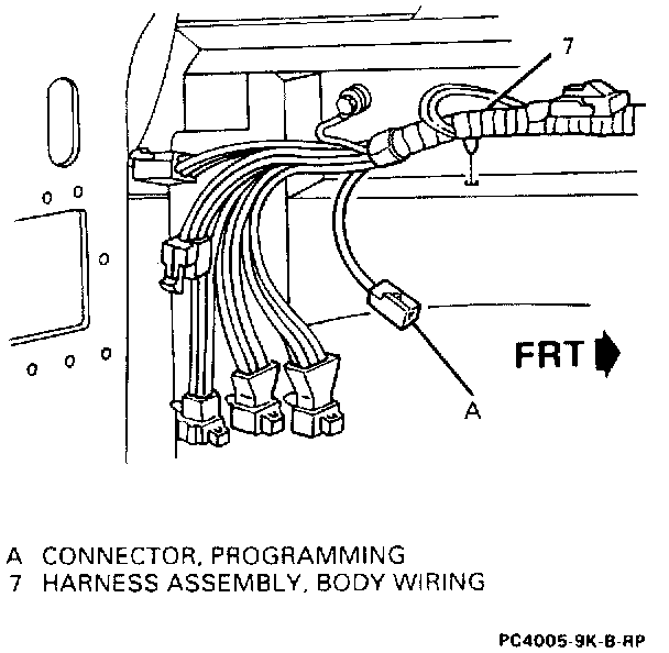 2. Remove the right back body pillar finish panel to access programming connector, for wagon.