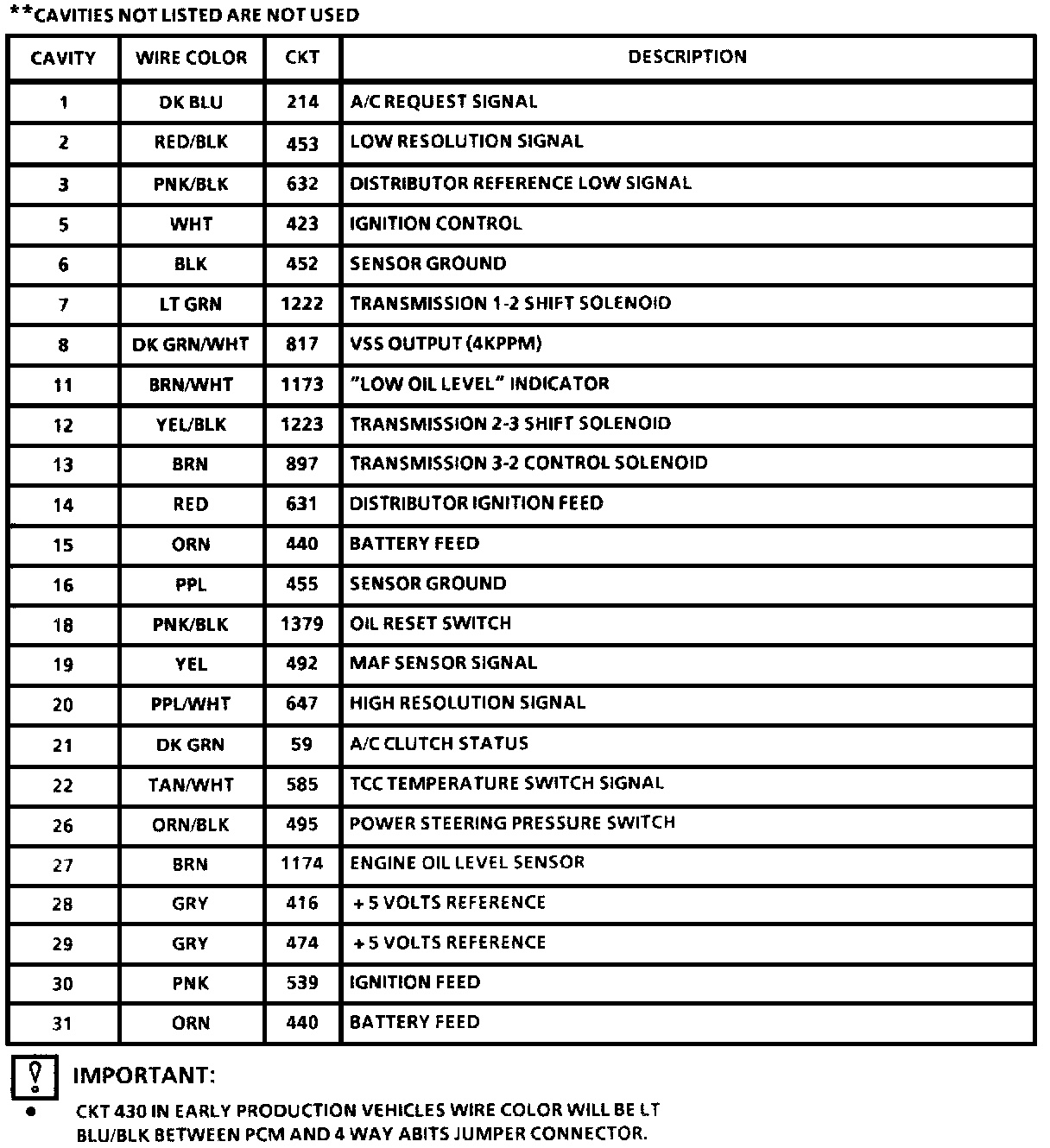 PCM Voltage Chart.: