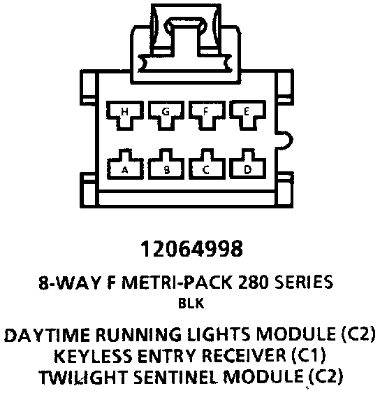 Daytime Running Lights Module (C2), Keyless Entry Receiver (C1), Twilight Sentinel Module (C2):