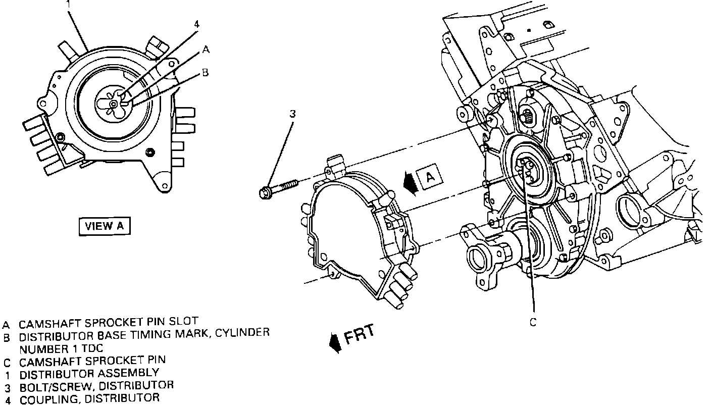 The distributor is connected directly to the camshaft, located behind the water pump.