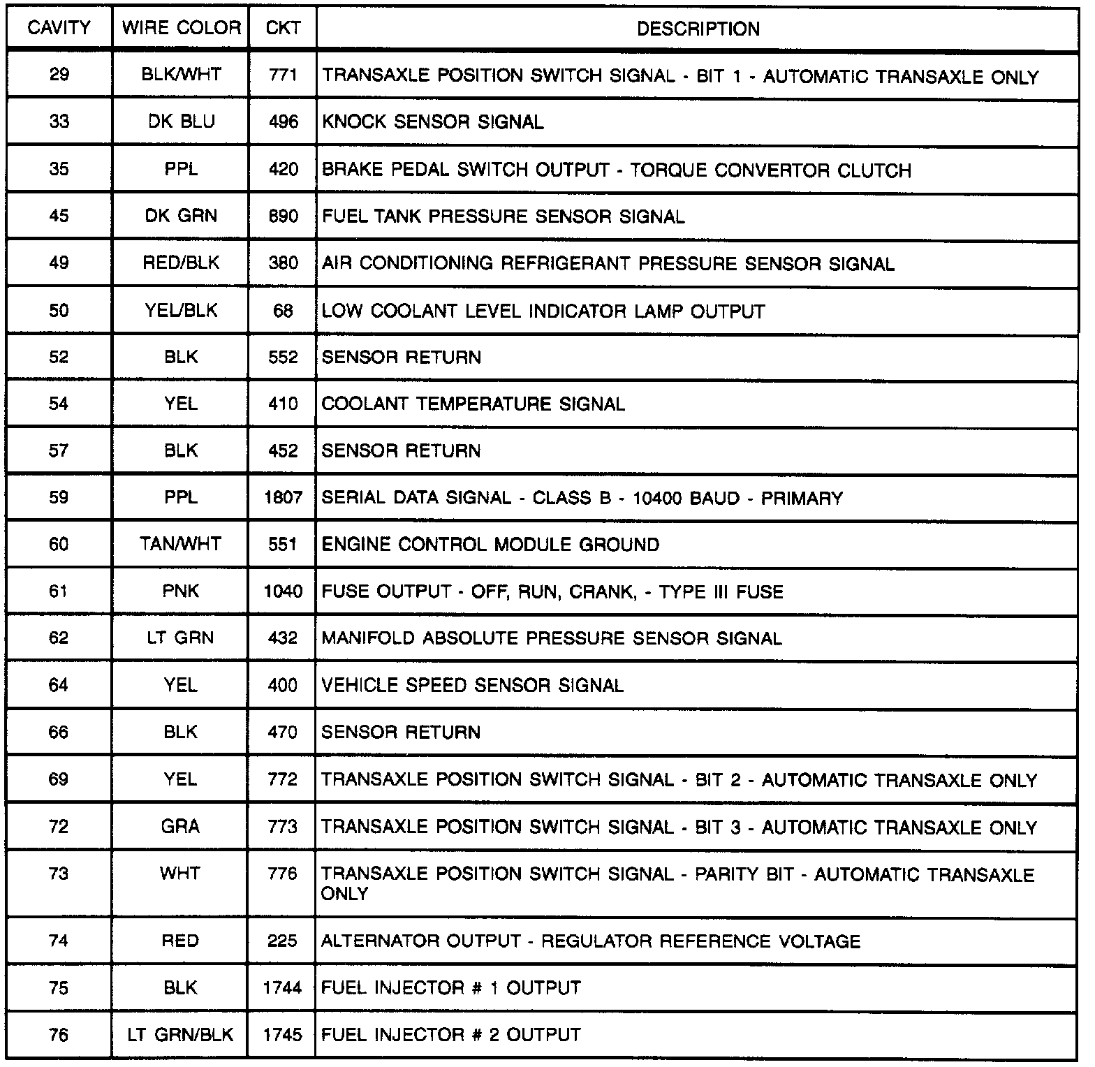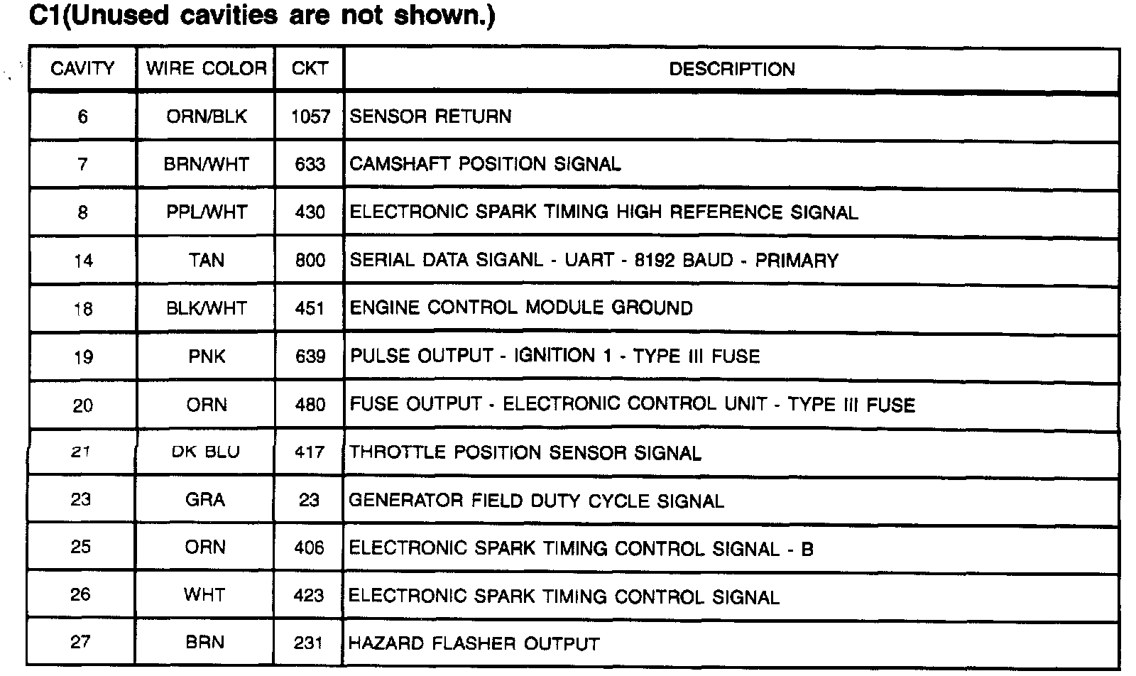 Powertrain Control Module: C1 (Unused Cavities Are Not Shown) (Part 2 Of 2):