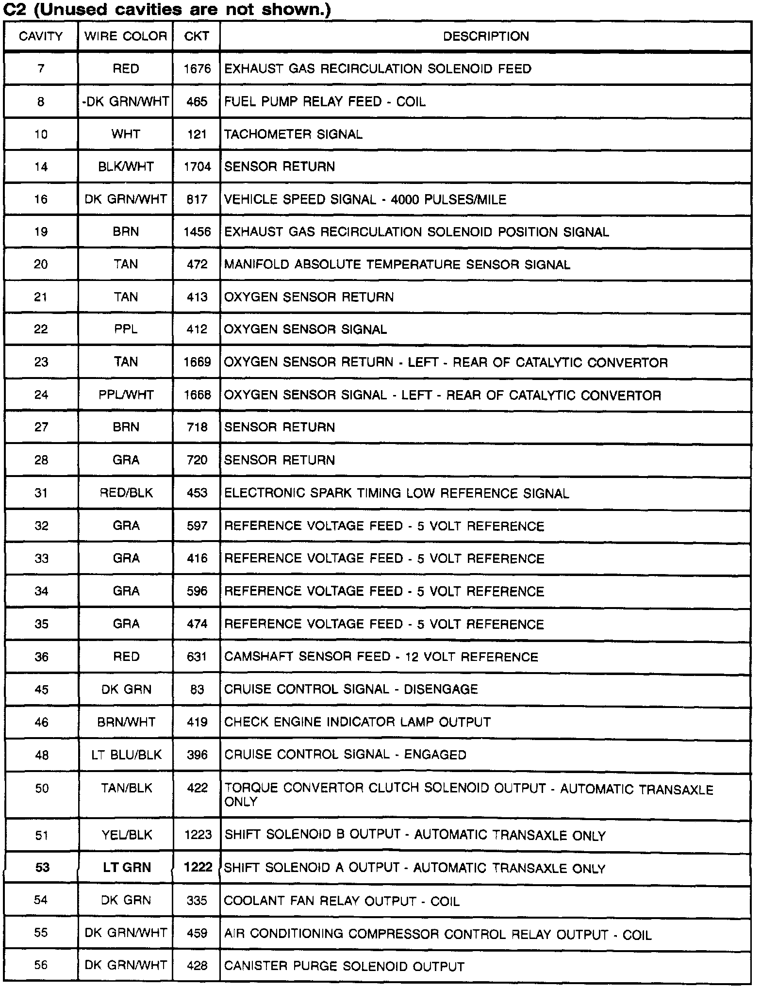 Powertrain Control Module: C2 (Unused Cavities Are Not Shown) (Part 2 Of 2):
