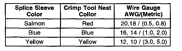 5. Select the proper splice sleeve (2) and the required crimp nest tool, refer to the Crimp and Seal Splice Table.