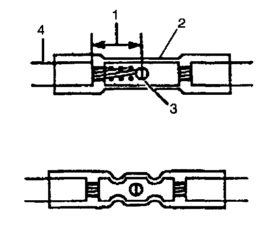 9. Insert the wires into the splice sleeve until the wire hits the barrel stop. The splice sleeve has a stop in the middle of the barrel in order to prevent the wire from passing through the splice (3).