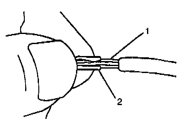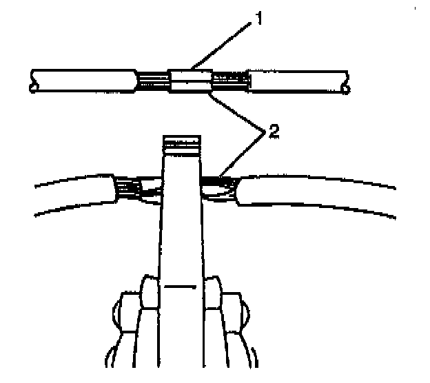 ^ Ensure that each splice is at least 40 mm (1.5 in) away from other splices, harness branches and connectors. This helps prevent moisture from bridging adjacent splices and causing damage.