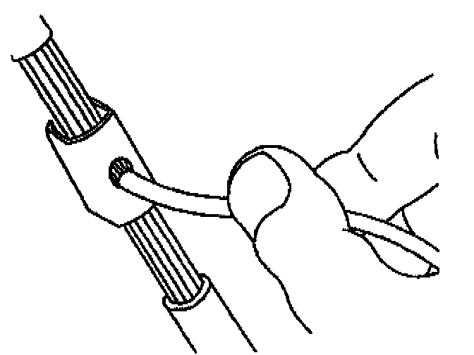 ^ Strip approximately 7.5 mm (5/16 in) of insulation from each wire to be spliced.