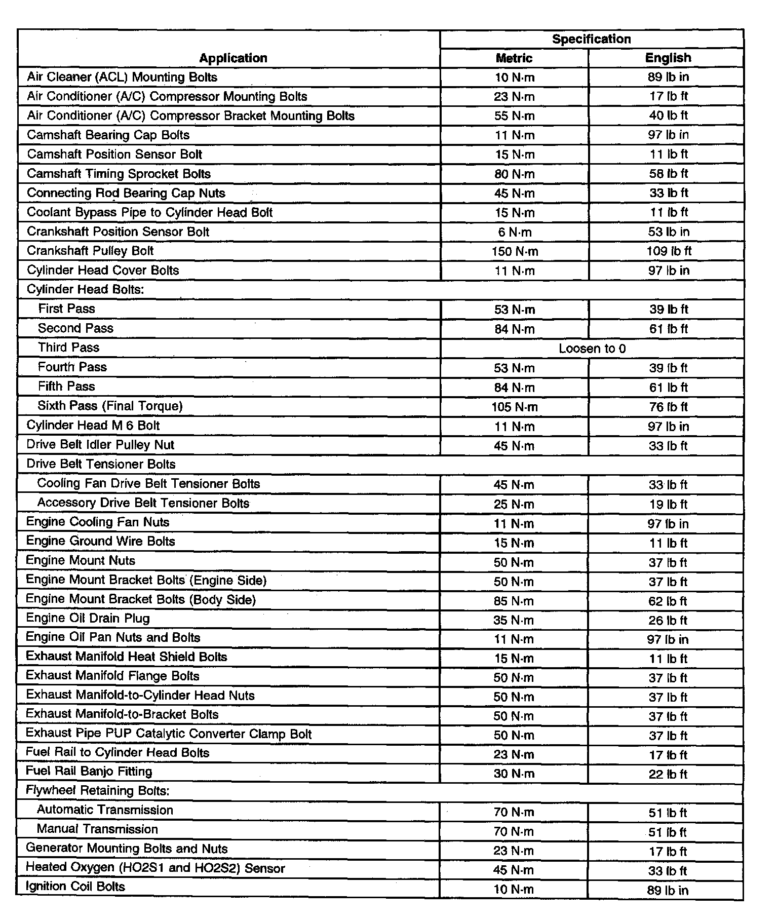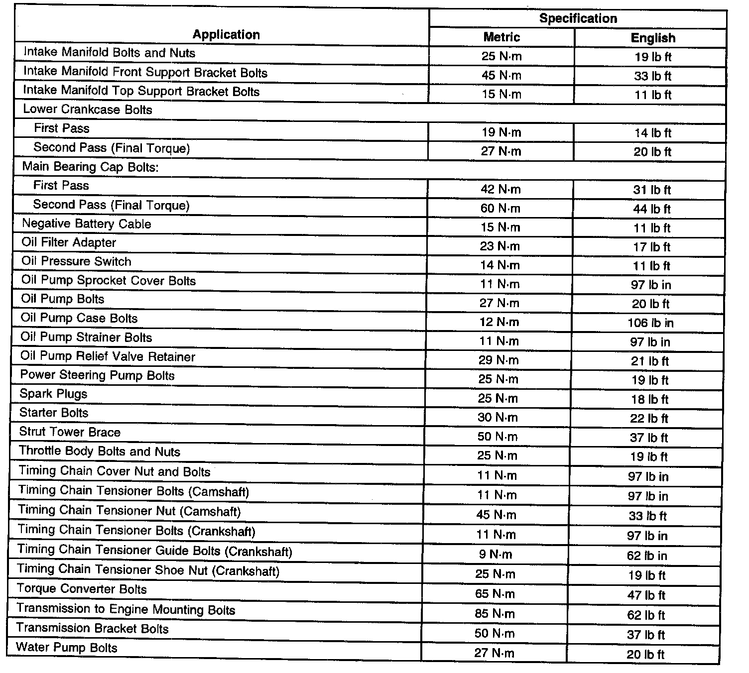 Fastener Tightening Specifications