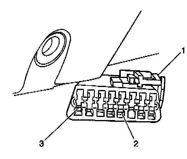 1. Set the receiver to the reprogramming mode by installing a 5 amp fused jumper wire from cavity 8 (3) to cavity 4 (2) of the data link connector (1). The door locks will lock and unlock once to indicate you are in the reprogramming mode.