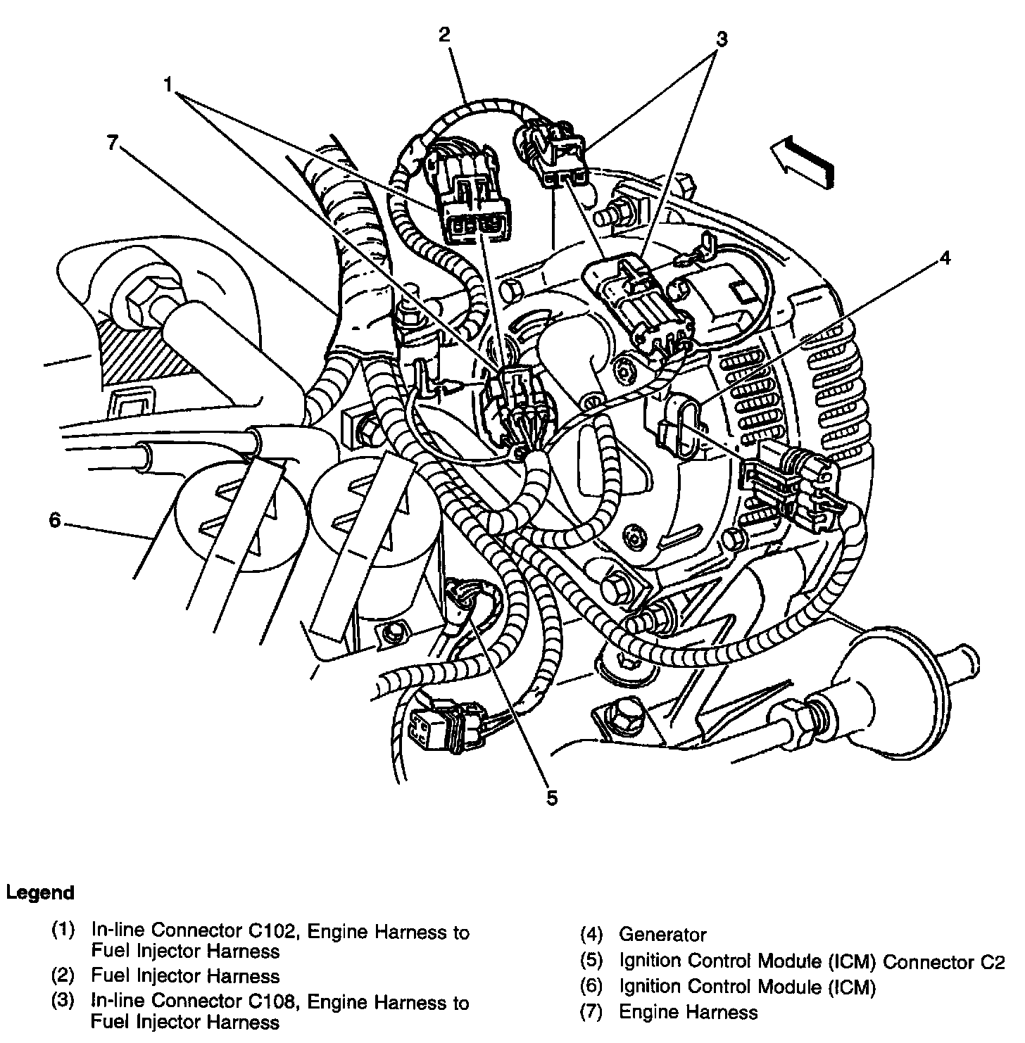 Top rear right side of the engine