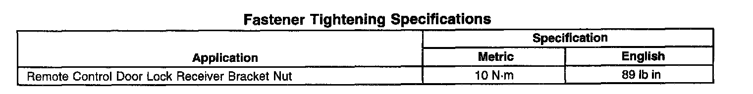 Fastener Tightening Specifications: