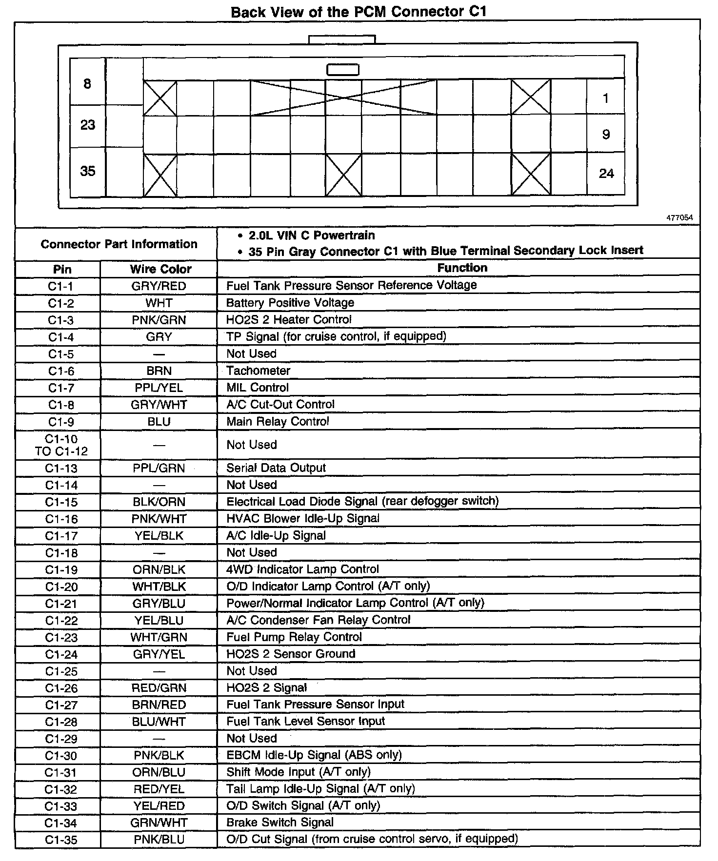 Back View Of The PCM Connector C1: