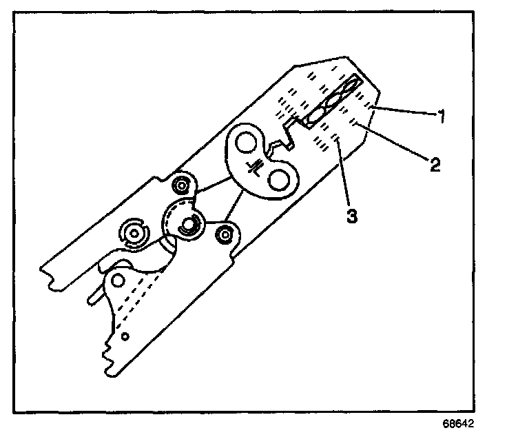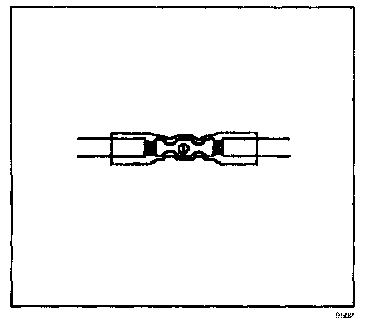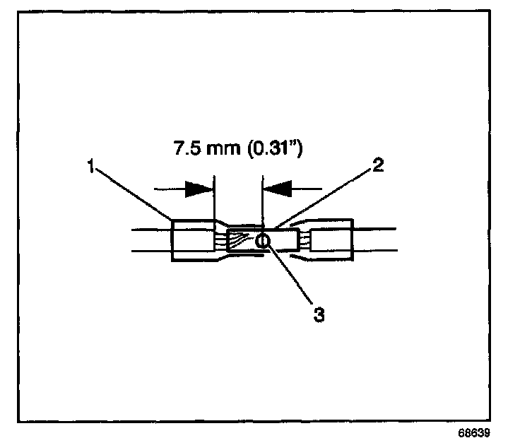6. Place the splice sleeve in the nest. Ensure that the crimp falls midway between the end of the barrel and the stop. The sleeve has a stop (3) in the middle of the barrel (2) in order to prevent the wire (1) from going further. Close the hand crimper handles slightly in order to firmly hold the splice sleeve in the proper nest.