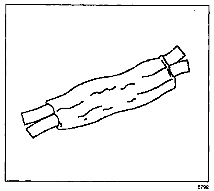 ^ Ensure that each splice is at least 40 mm (1.5 in) away from other splices, harness branches and connectors. This helps prevent moisture from bridging adjacent splices and causing damage.