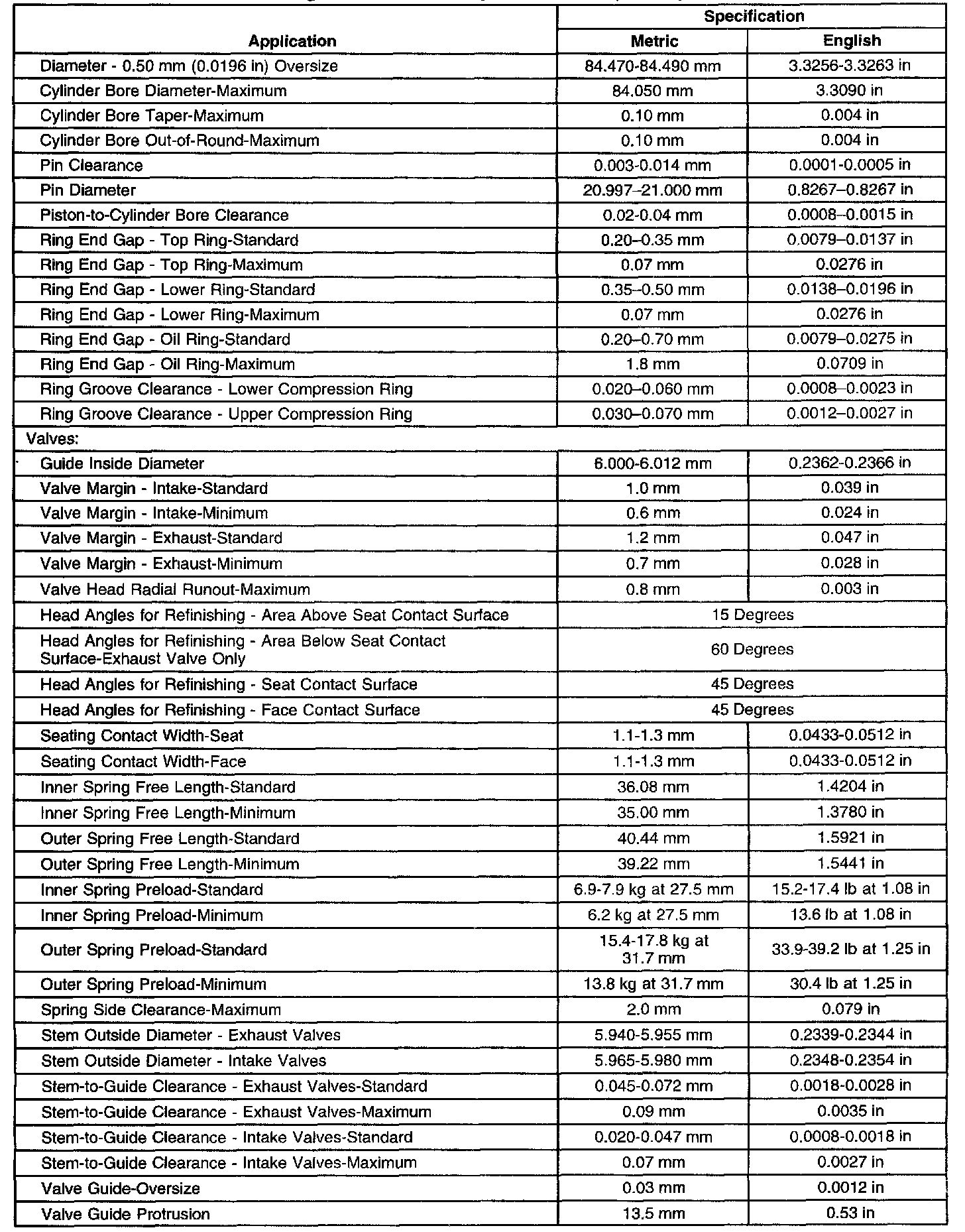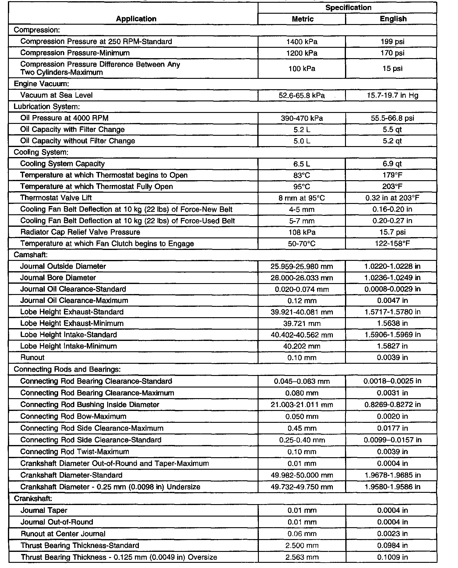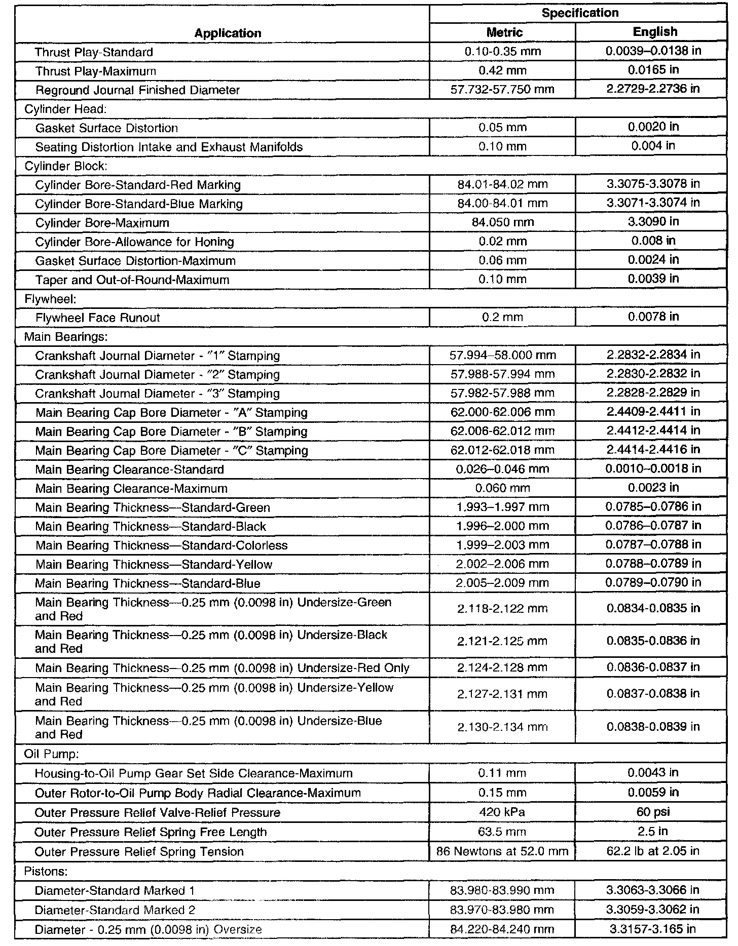 Engine Mechanical Specifications-Unit Repair