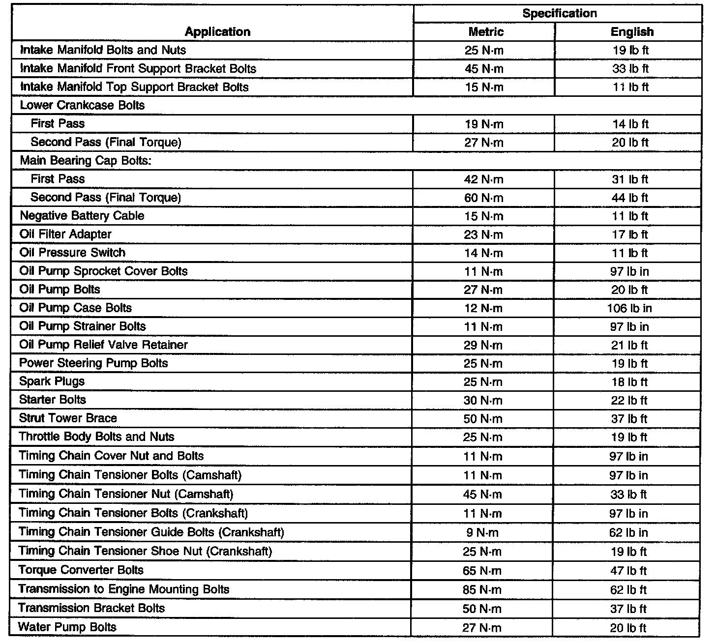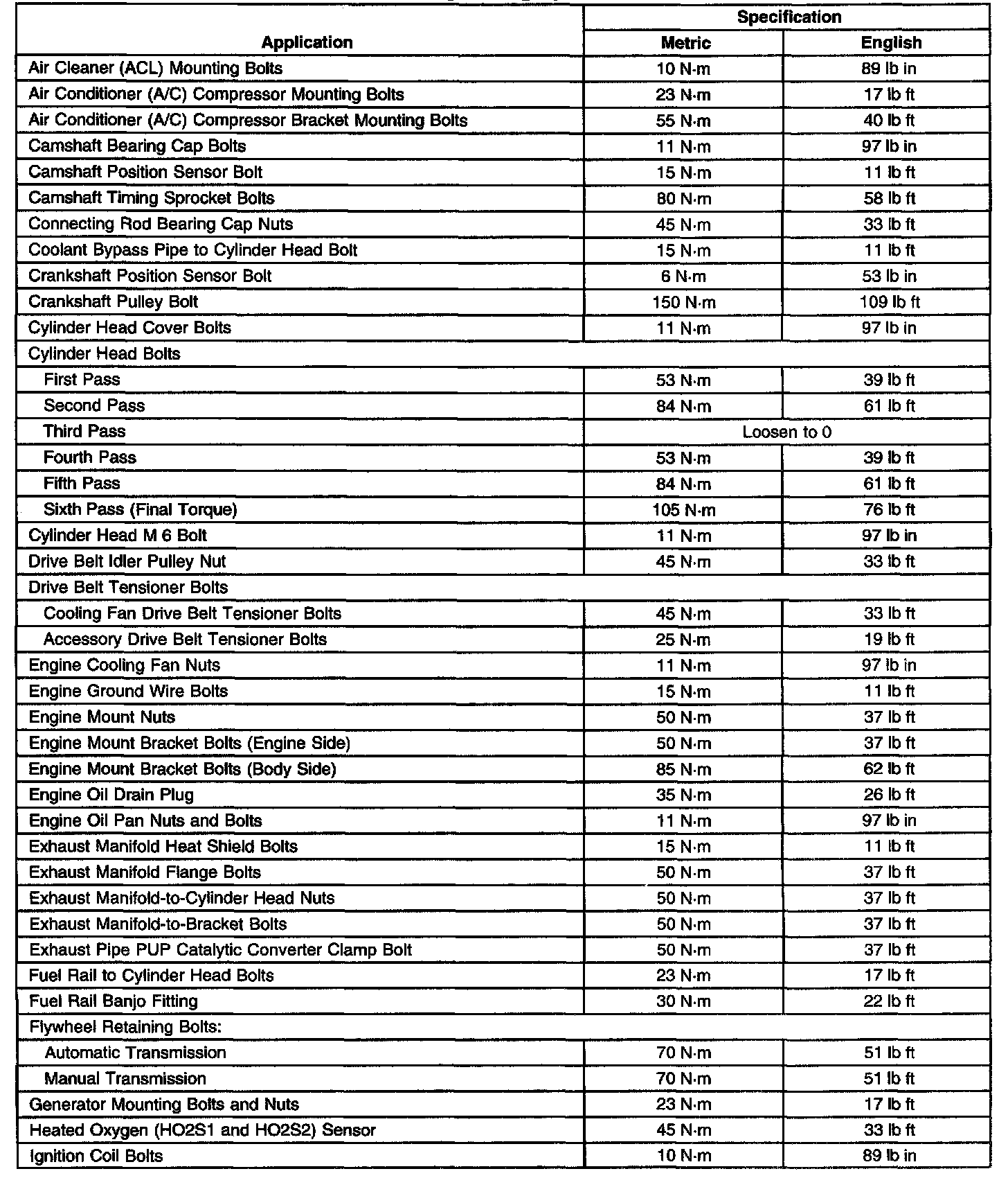 Fastener Tightening Specifications