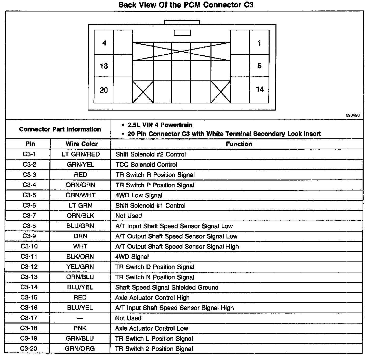 Back View Of The PCM Connector C3: