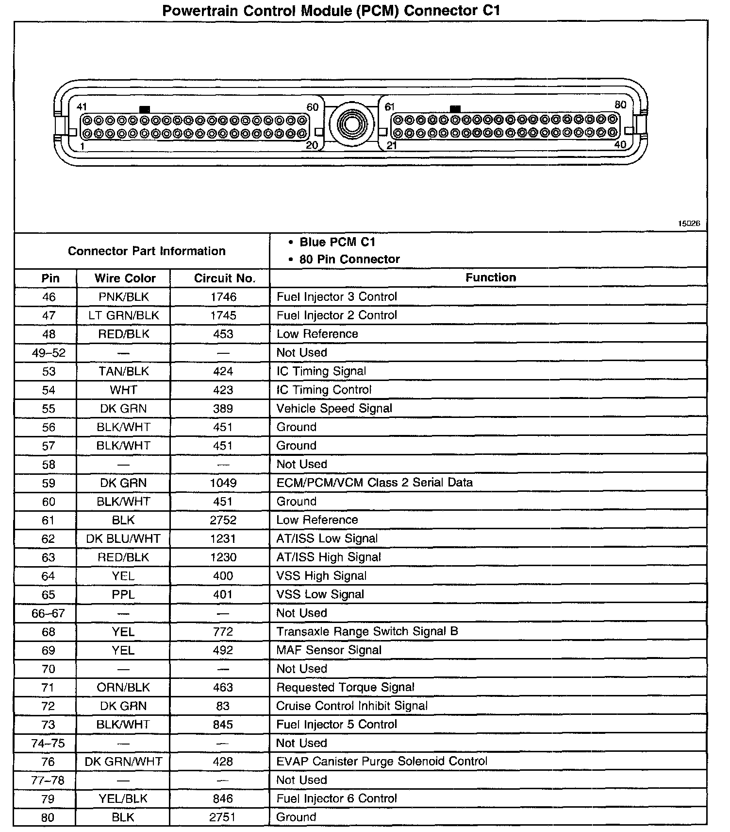 Powertrain Control Module (PCM) Connector C1 (Part 1 Of 2):