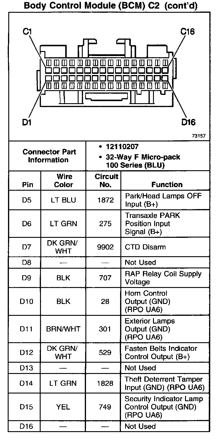 Body Control Module (BCM) C2 (Part 2 Of 2):