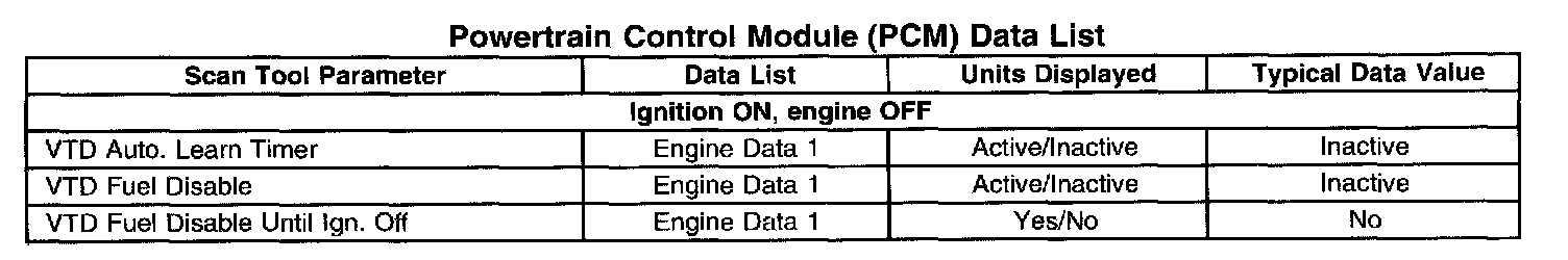 Powertrain Control Module (PCM) Data List: