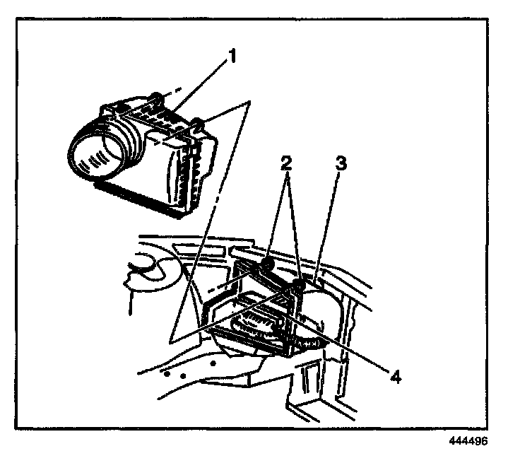 2. Carefully install the PCM (4) and harness into the PCM housing (3).
