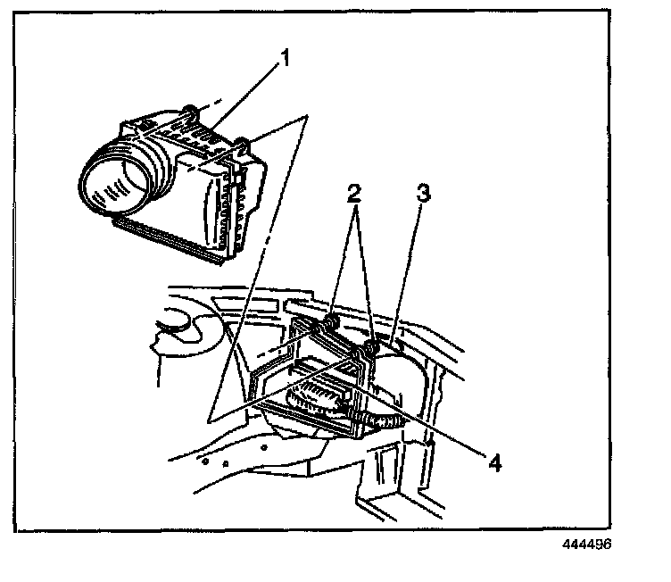 5. Carefully remove the air intake duct and MAF sensor from the throttle body and air cleaner housing (1).