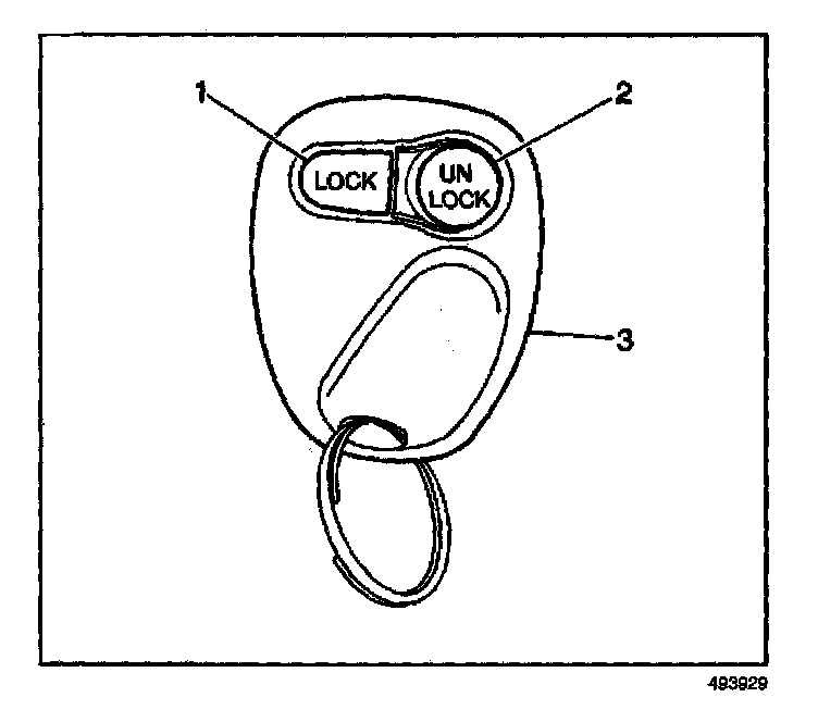 4. Verify that the remote control door lock receiver transmitter (3) is functioning correctly. If not, refer to Transmitter Programming.