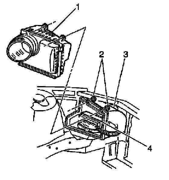 2. Install the PCM (4) and the harness into the air cleaner housing.