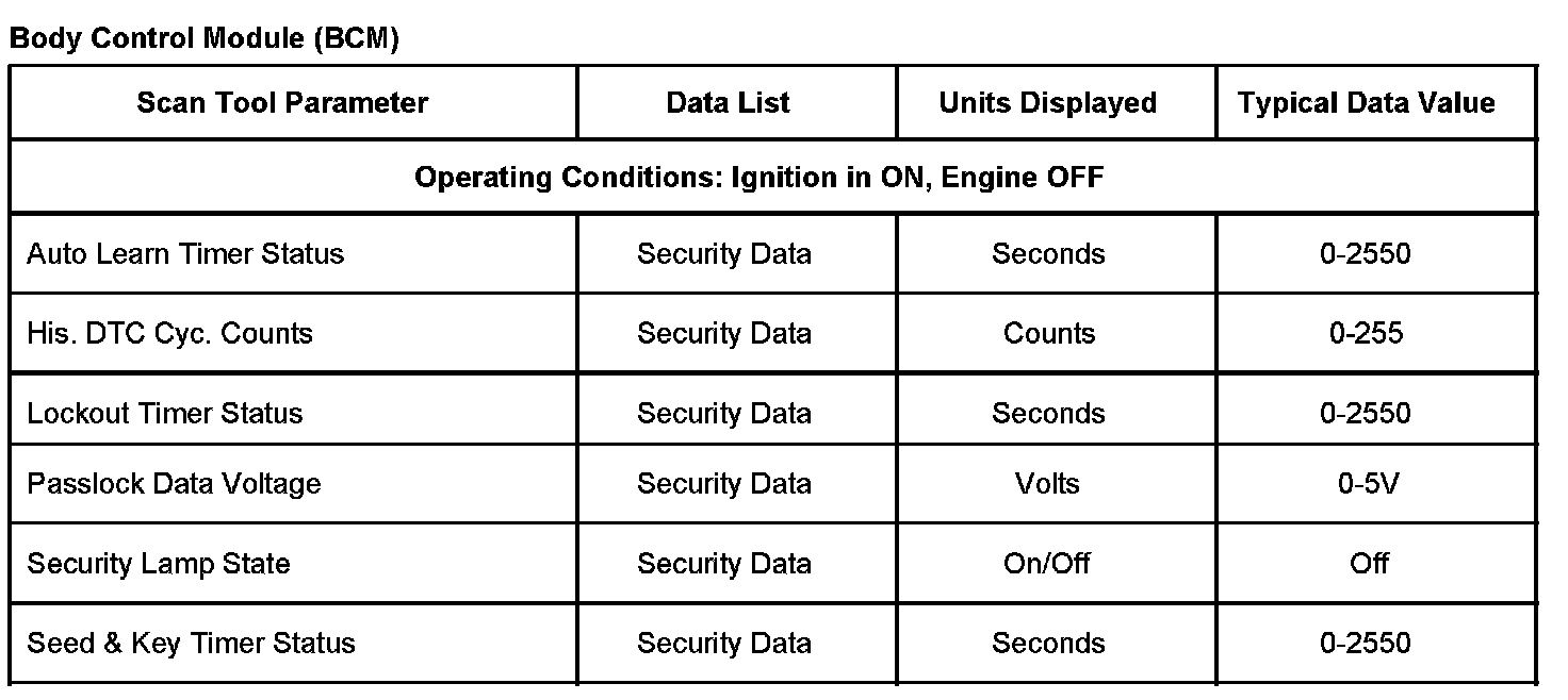 Scan Tool Data List - Antitheft System
