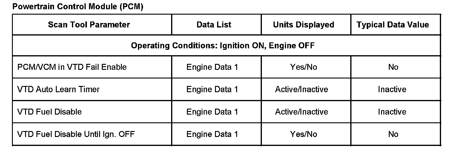 Scan Tool Data, Normal Values and Definitions