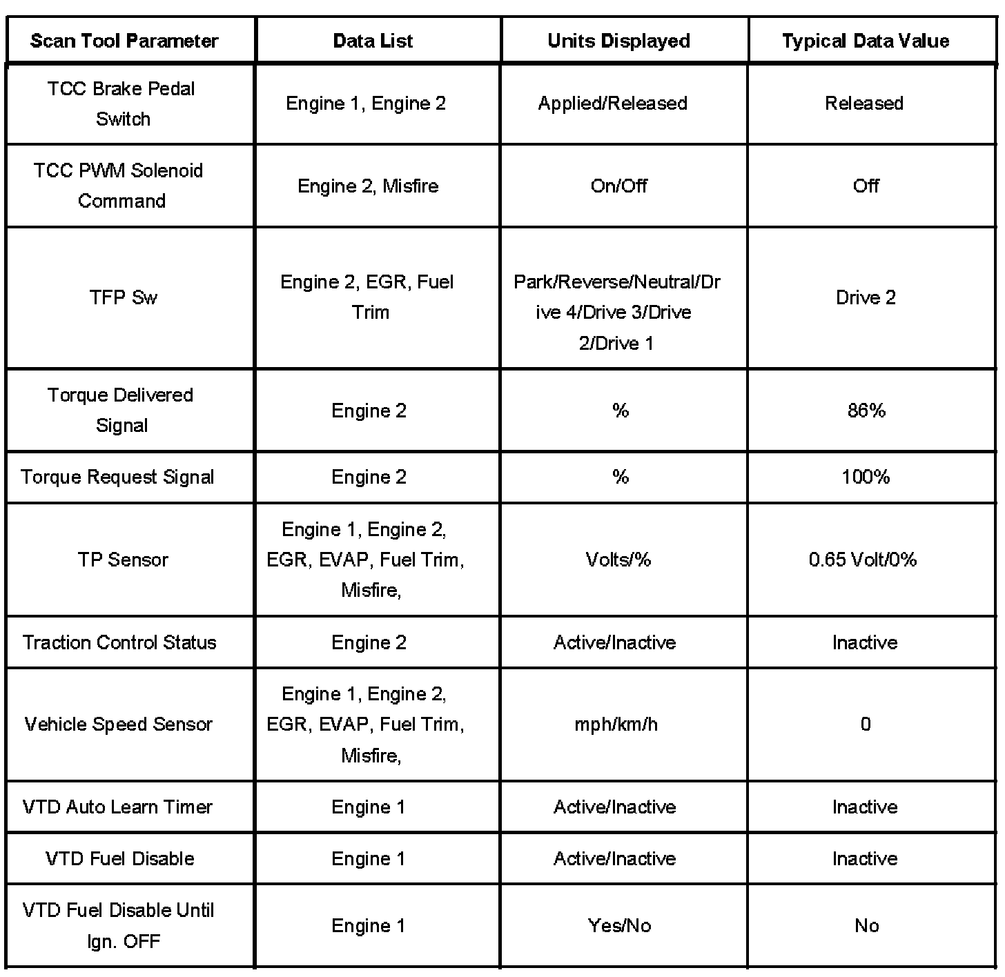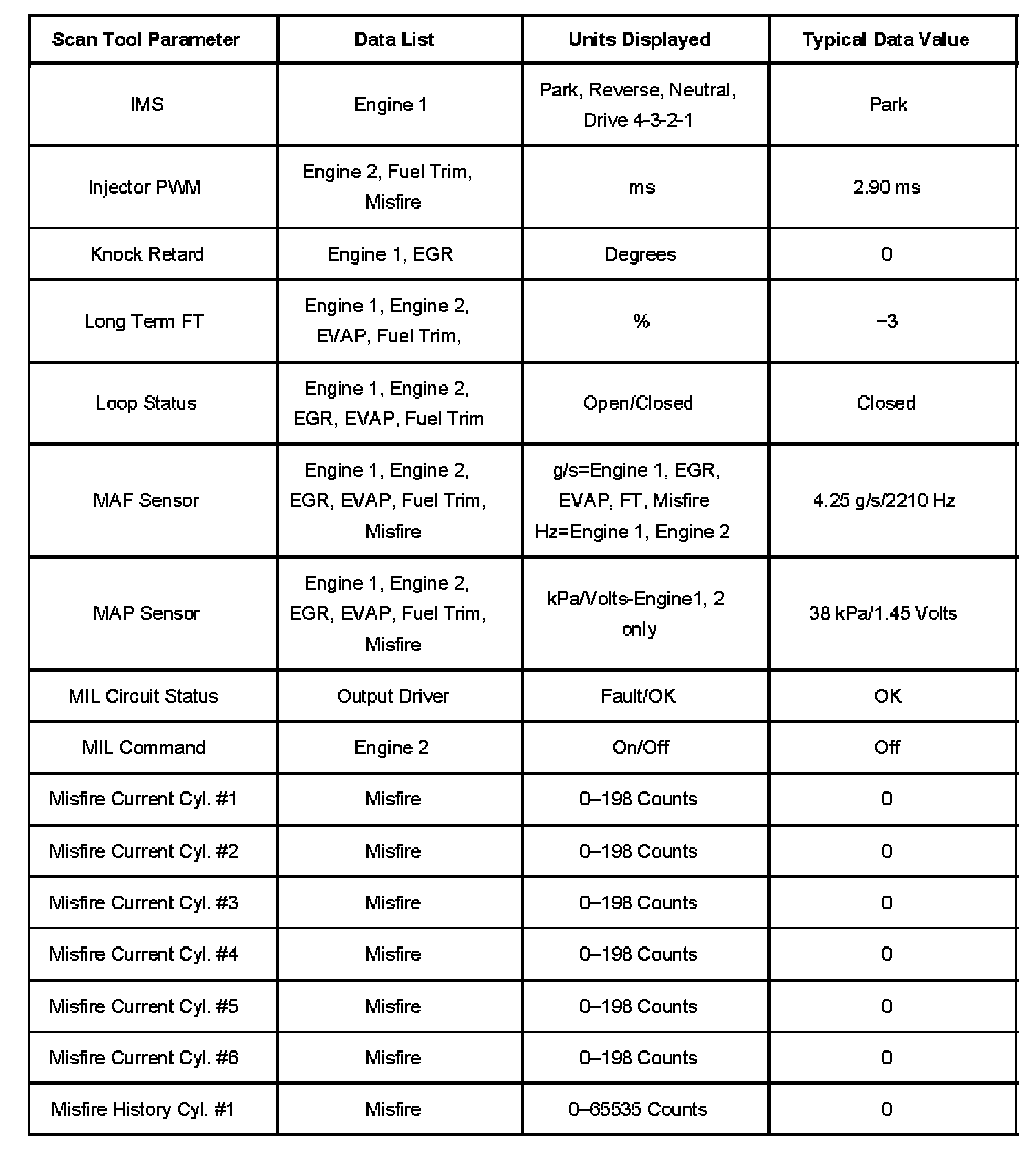 For scan tool parameter definitions, refer to Scan Tool Data Definitions. Scan Tool Data, Normal Values and Definitions