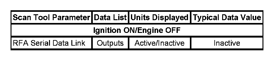 The Keyless Entry Scan Tool Data List contains all of the keyless entry related parameters that are available on the scan tool. The parameters in the list are arranged in alphabetical order. The column, "Data List," indicates the location of the parameter within the scan tool menu selections. Use the Keyless Entry Scan Tool Data List as directed by a diagnostic table or in order to supplement the diagnostic procedures. Begin all of the diagnostic procedures with Diagnostic System Check - Remote Keyless Entry. Diagnostic System Check - Remote Keyless Entry