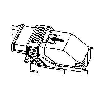 3. Locate the dress cover locking tabs at the front of the connector. Using a small flat-blade tool push down on one of the locking tabs and pull the cover up until the dress cover releases. Repeat this procedure for the other locking tab.