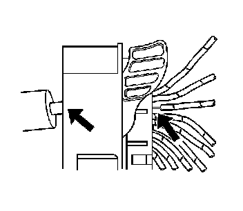 7. Insert the J 38125-13A (GM P/N 12031876-1) tool into the round canal between the terminals cavities at the front of the connector. See the release tool cross reference in the Reference Guide of the Terminal Repair Kit to ensure that the correct release tool is used.