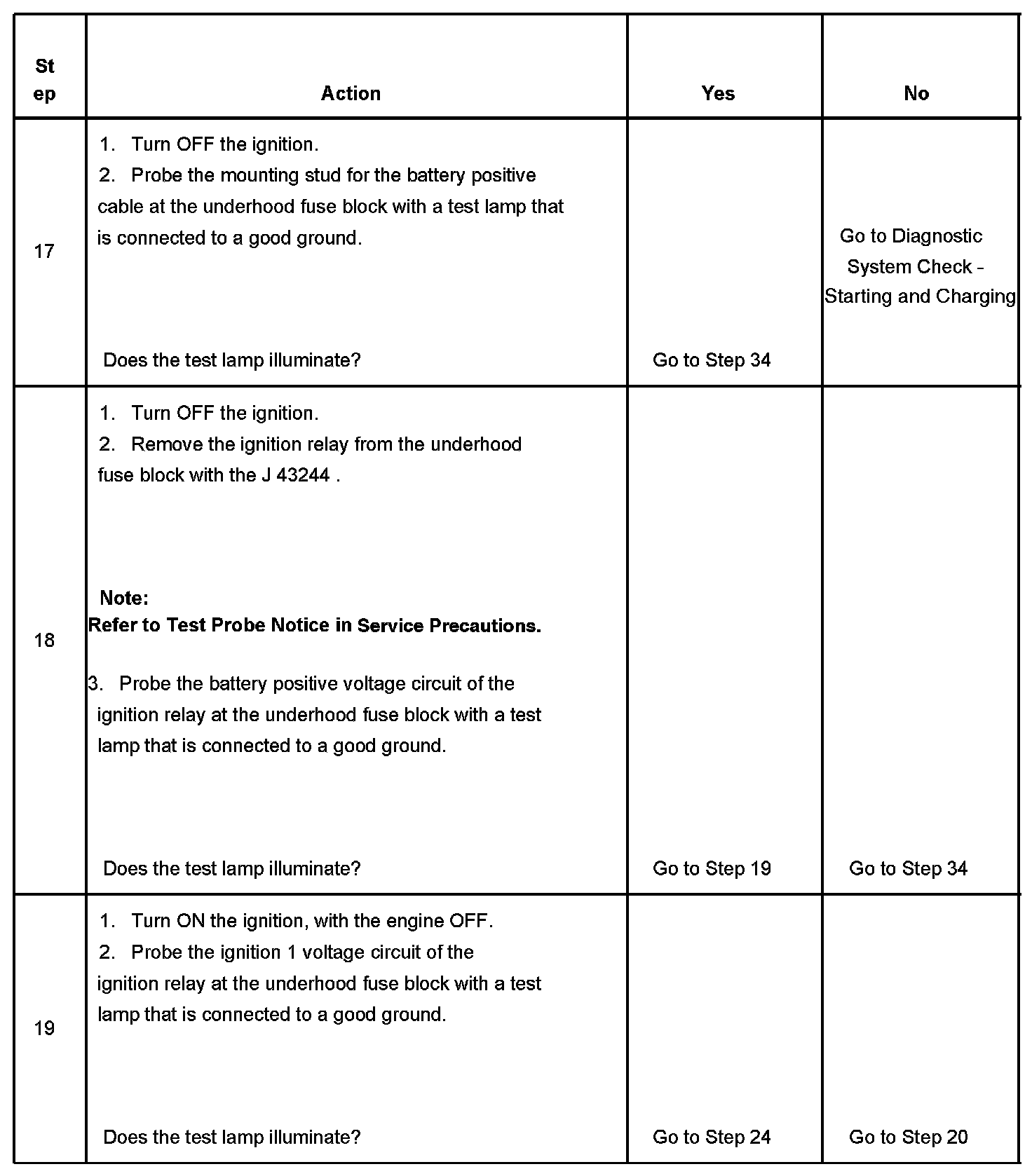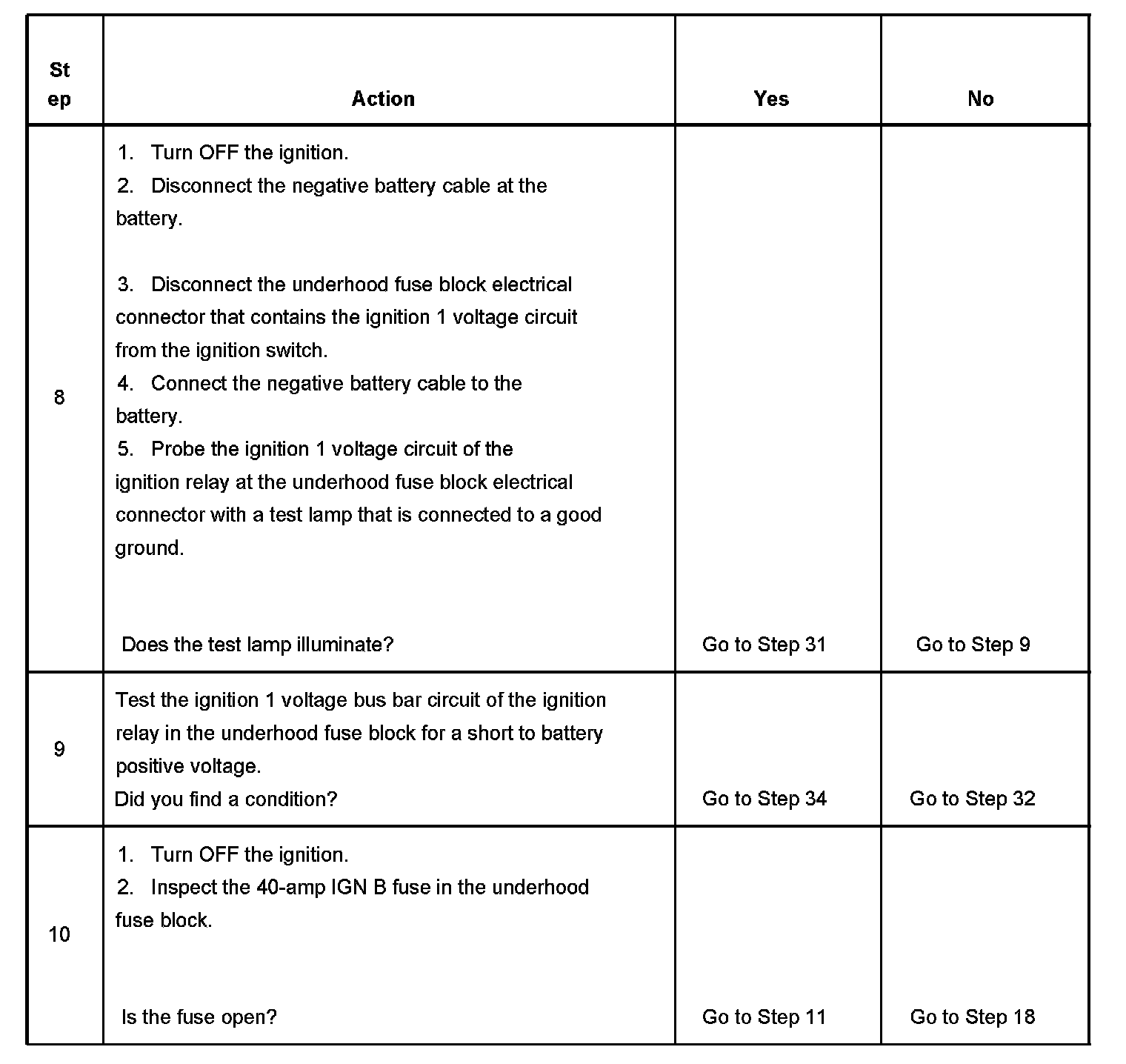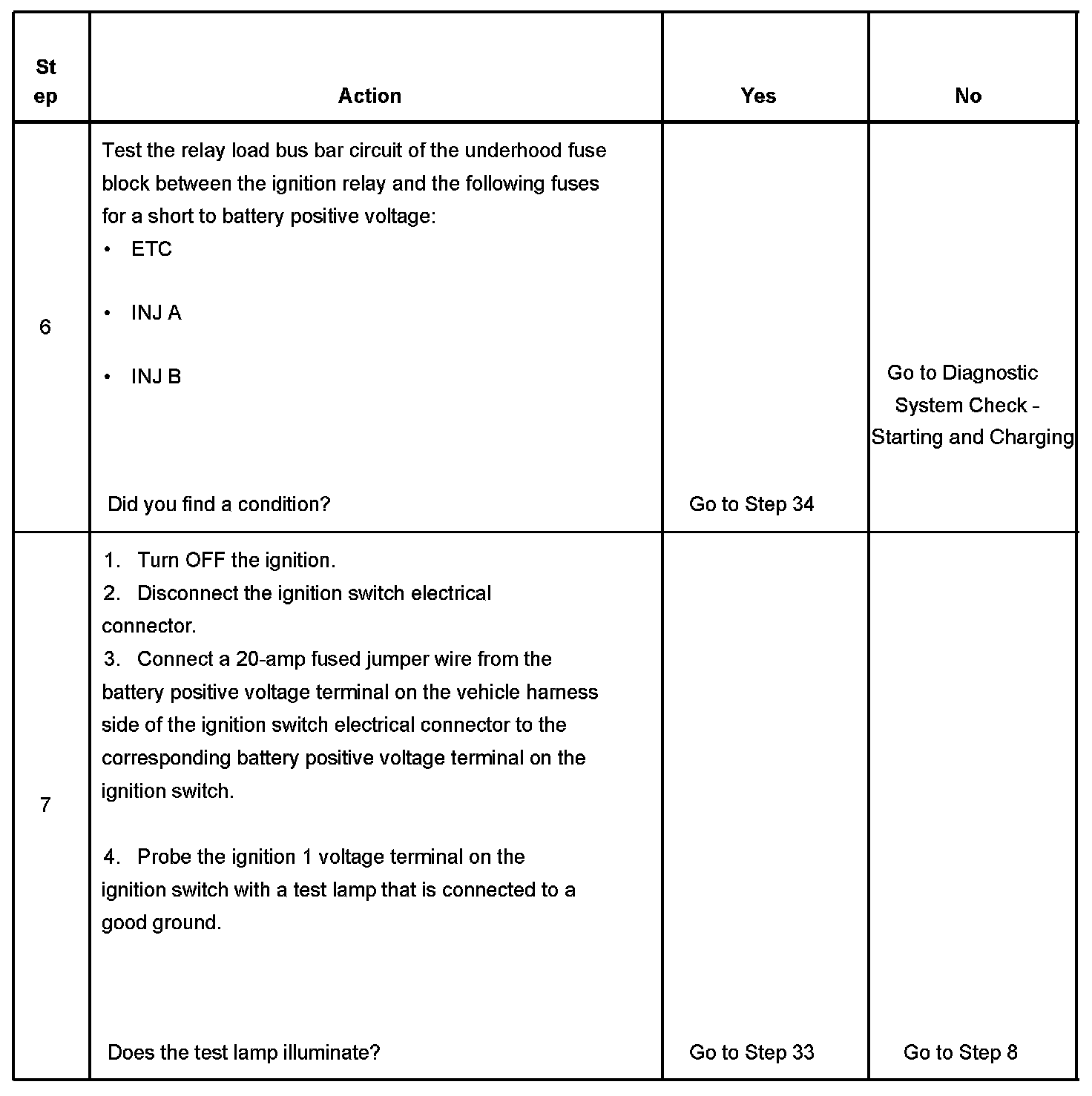 The ignition relay table assumes that the vehicle battery is fully charged.