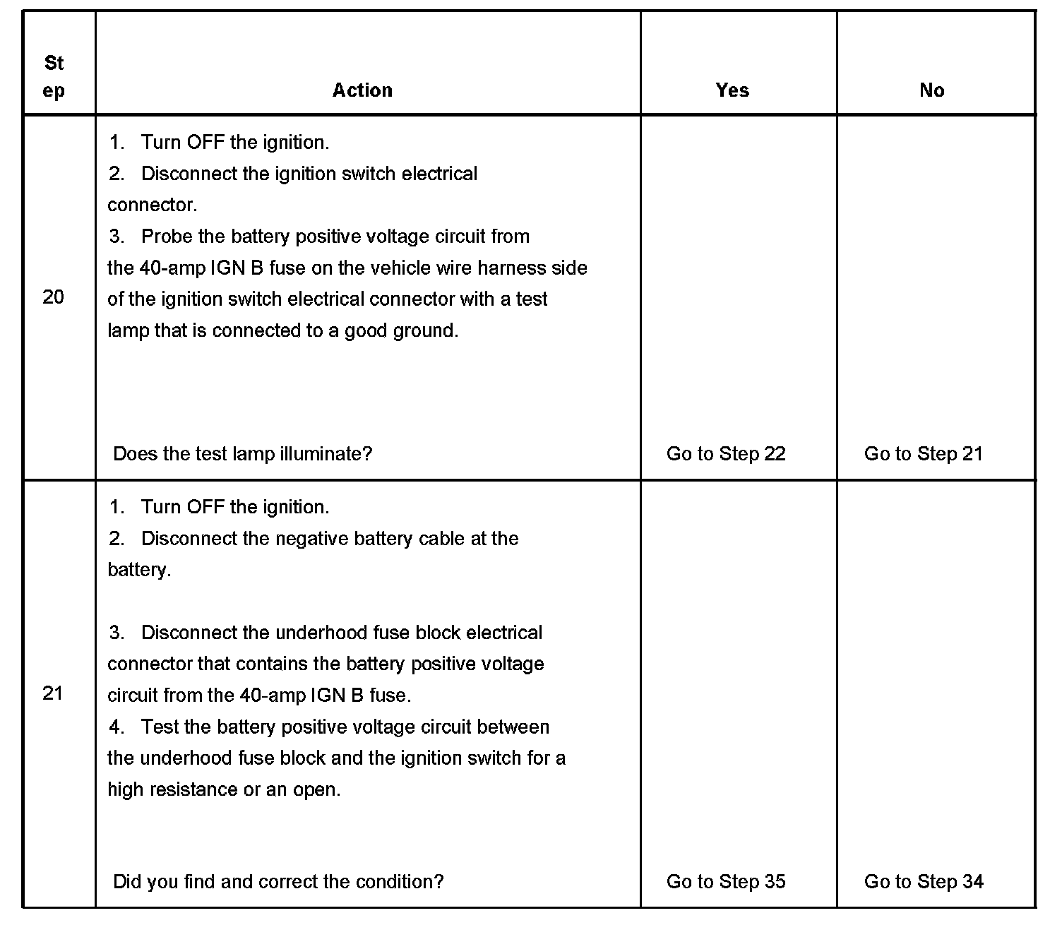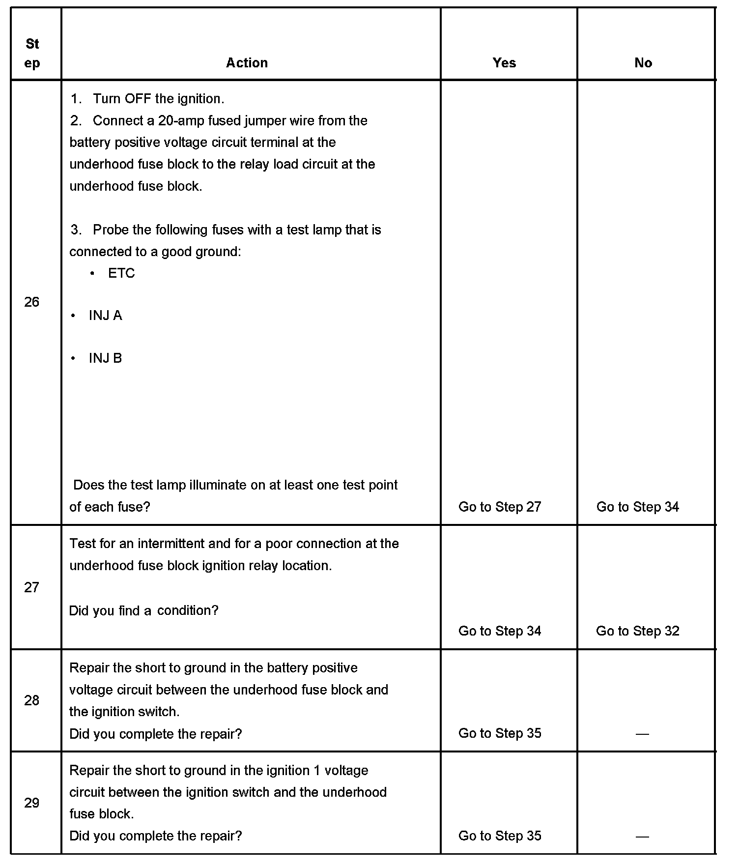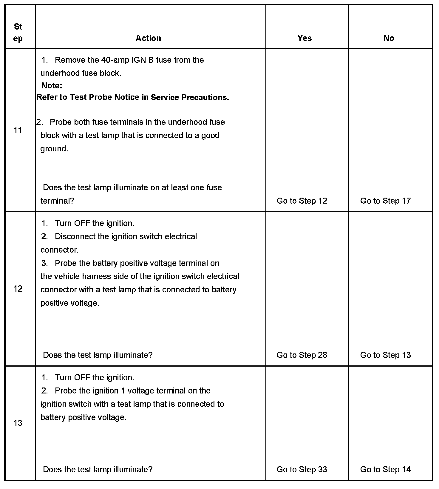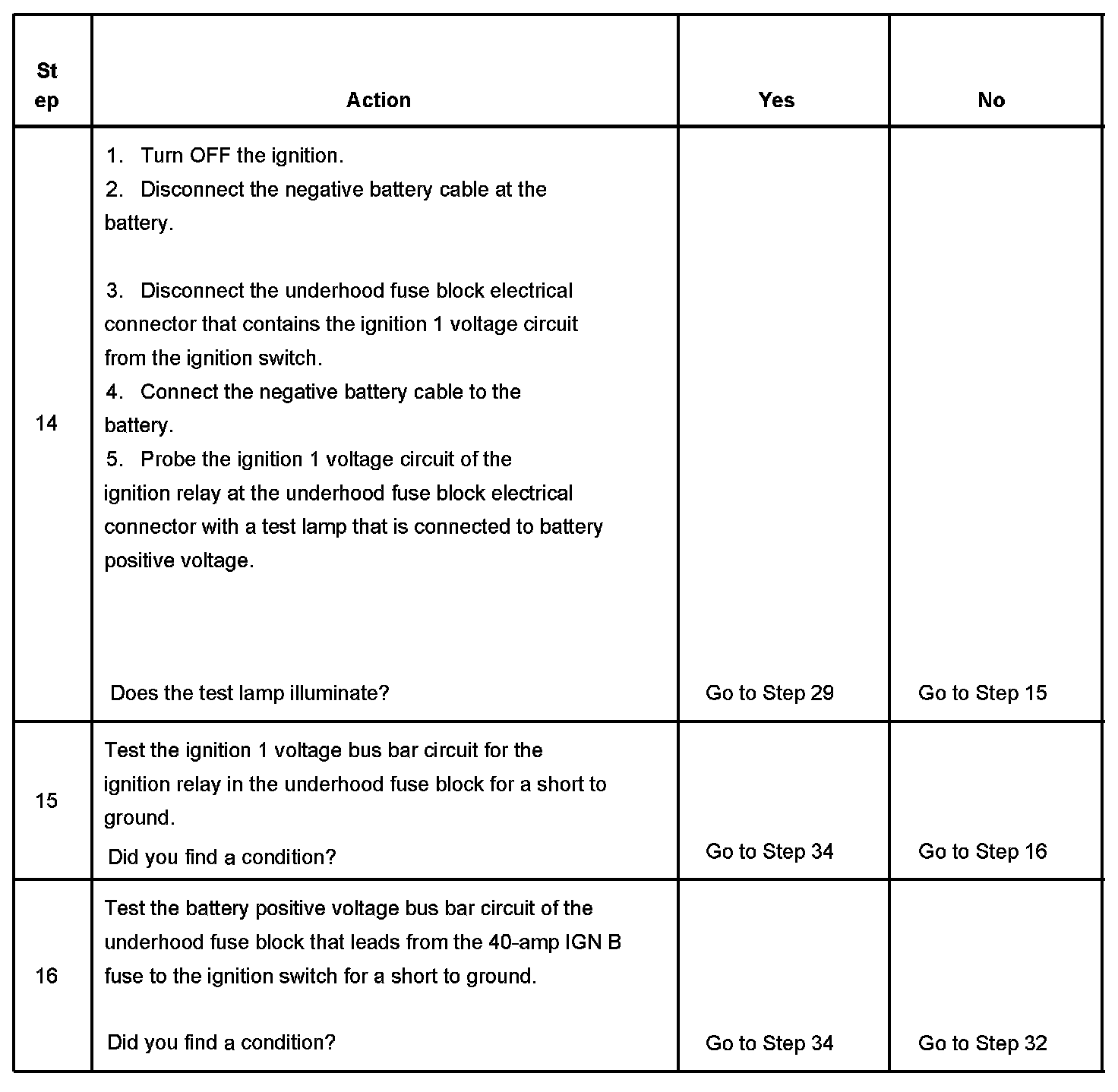 The ignition relay table assumes that the vehicle battery is fully charged.