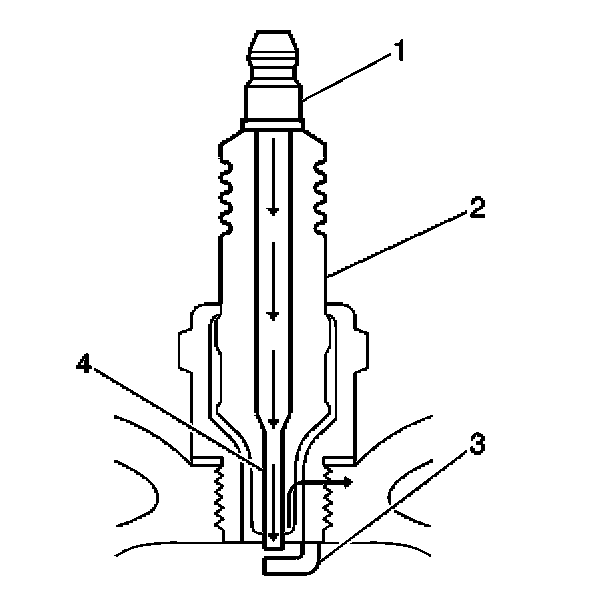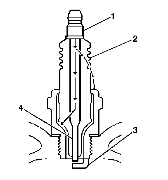 - Inspect for signs of tracking that occurred near the insulator tip instead of the center electrode (4).