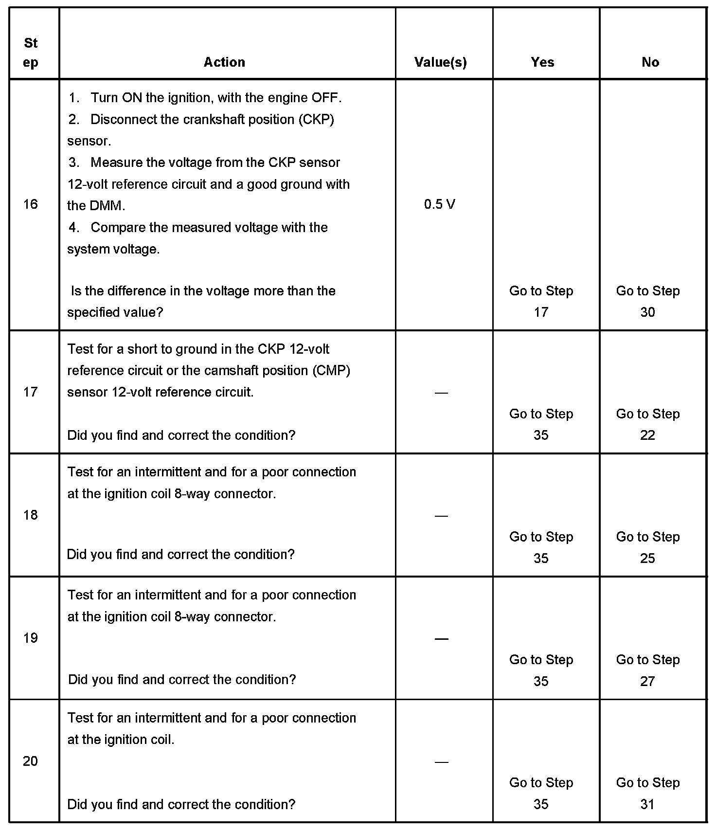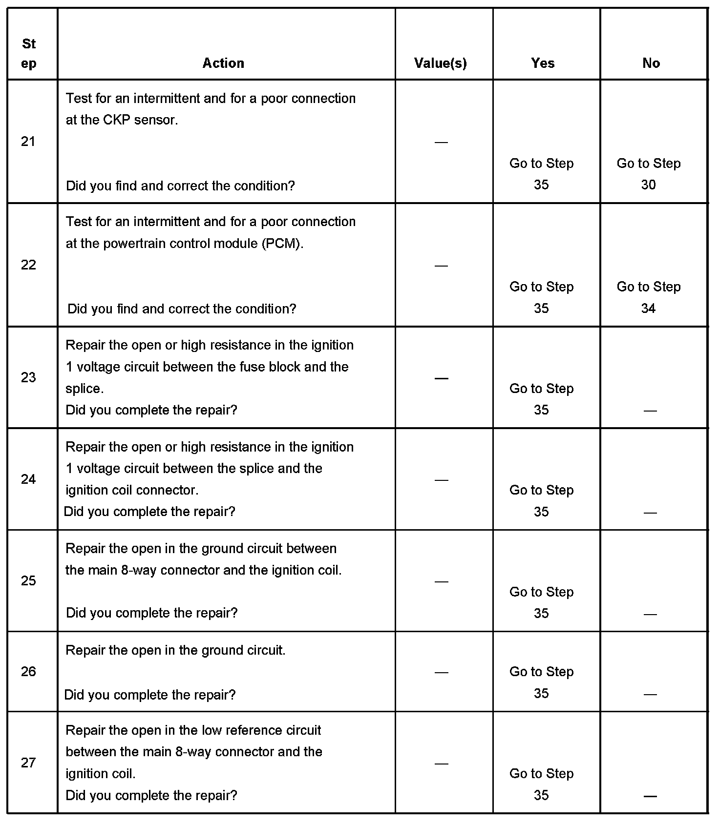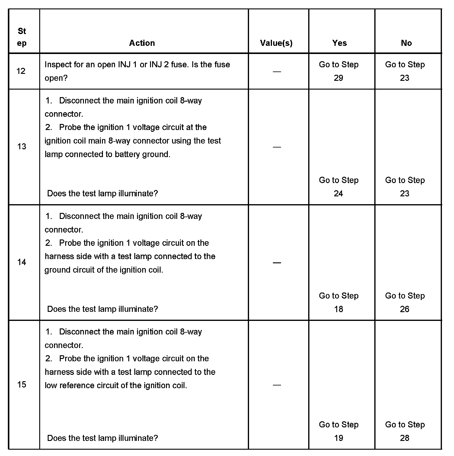 12. A good indication that the fuse is open is all off the misfire current counters are incrementing on one side of the engine. Inspect the ignition positive voltage circuit for a grounded circuit. If the fuse is open and the ignition coil circuits are OK, inspect the injector circuits for being grounded.
