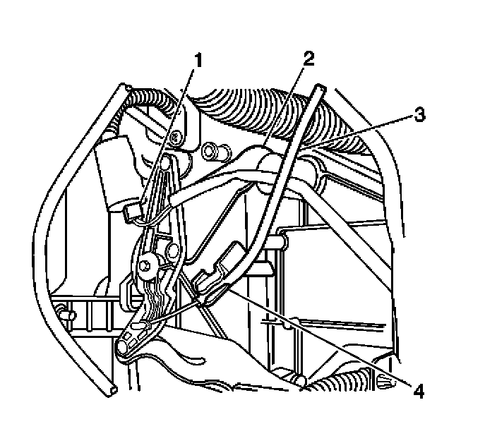 19.1. Gently pry the temperature control cable (4) sheath from the heater control unit. Unhook the cable from the lever arm.
