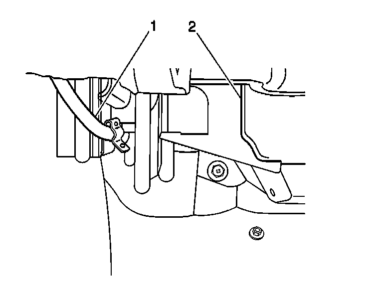 19.2. Gently pry the mode control cable (1) sheath from the heater control unit. Unhook the cable from the lever arm.