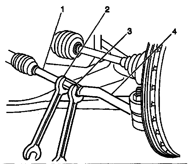 3. Rotate the left tie rod (1) and the right tie rod by the same amount.