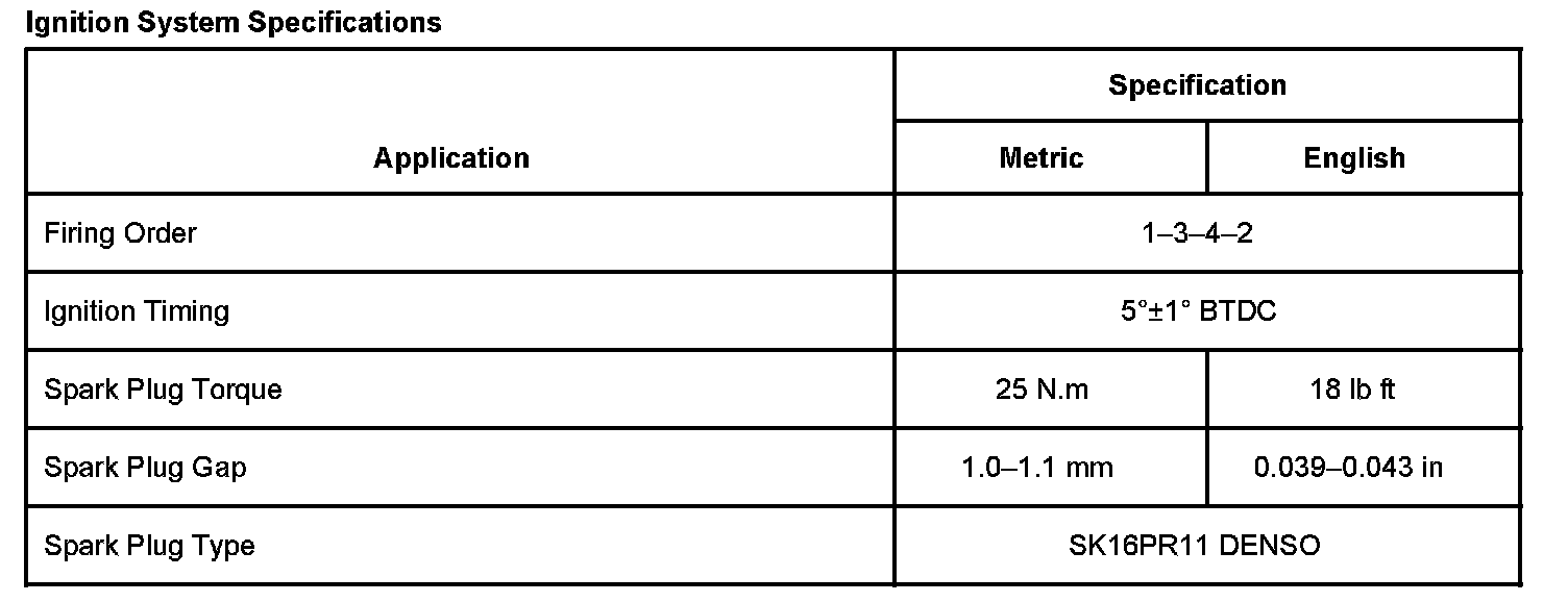 Ignition System Specifications: